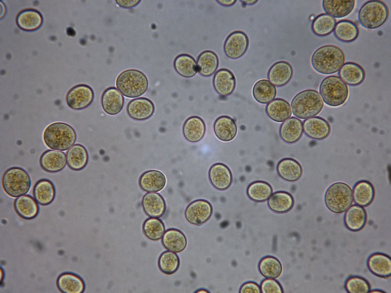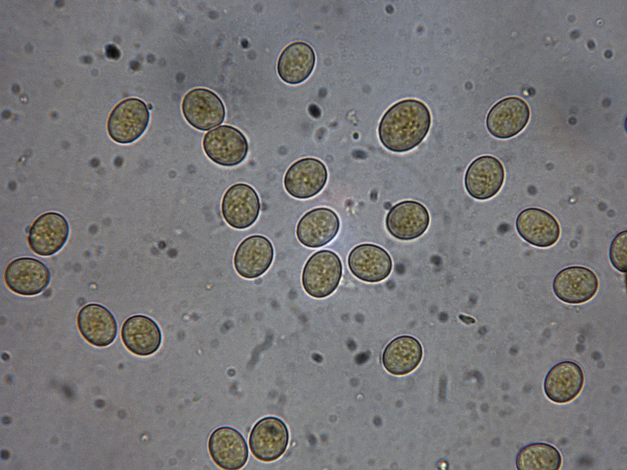 Die einzelnen größeren Sporen messen 11,3 - 12,3 x 9,8 - 10,1 µm, haben die Farbe von P.kleinii und P.hyalosporus.