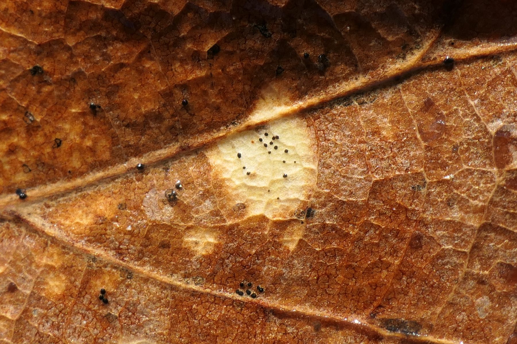14.02.2023 CH-Lengnau BE Jura ca 600 m, viele Eichenblätter von diesem Pilz befallen;