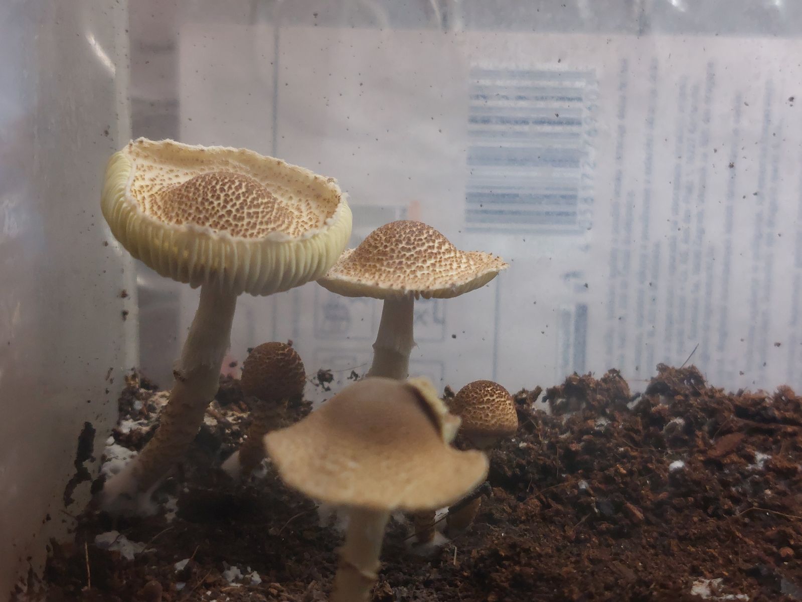 Ich habe in meinem Vogelspinnen Terrarium eine interessante Entdeckung gemacht. Da stehen Pilze drin das Terrarium ist seid 2 Jahren so es wurde keine neue Erde eingefüllt. Von daher kann nicht die Erde der Hauptgrund sein. Ich könnte mir hier gut eine Art Schirmpilz vorstellen da gibt es ja diverse Kompostbewohner. Wobei keine Kompost verwendet wurde. Vielleicht findet es ja jemand interessant und kann mir etwas dazu sagen. Wenn das Teil größer werden sollte reicht der Platz nicht aus. Ich werde das wachsen beobachten und weiter Fotos reinstellen.