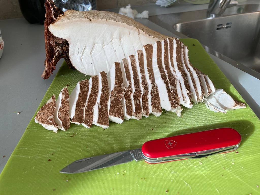 Ob ihr's glaubt oder nicht, aber Birkenporlingtee schmeckt mir tatsächlich sehr gut. Könnte ich literweise saufen. Ganz ohne zusätzliche Süße. Der köchelt so ein Stünderl vor sich hin und ist dann gar nicht mehr so bitter. Fast schon zu wenig bitter für meinen Geschmack 😅😅