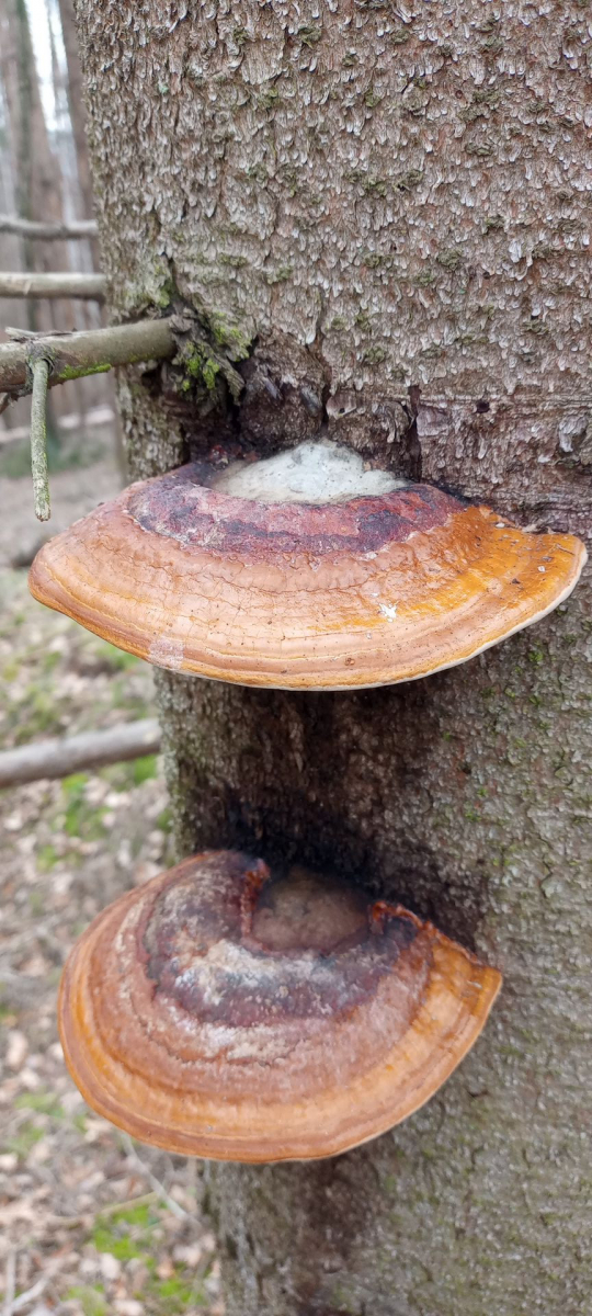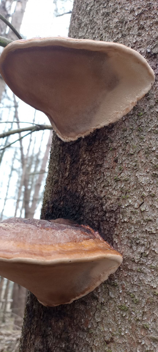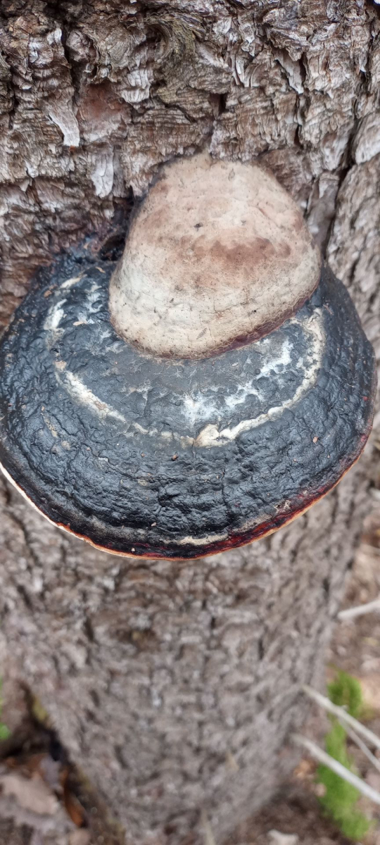 Zur Not muss dann wieder mal Fomitopsis pinicola für die Smartphone-Kamera herhalten, die sich bei dem rasanten Fichtensterben immer irgendwo finden. Ich fand diese hier mal deutlicher in der Farbe, weil nicht so schwarz verklebt