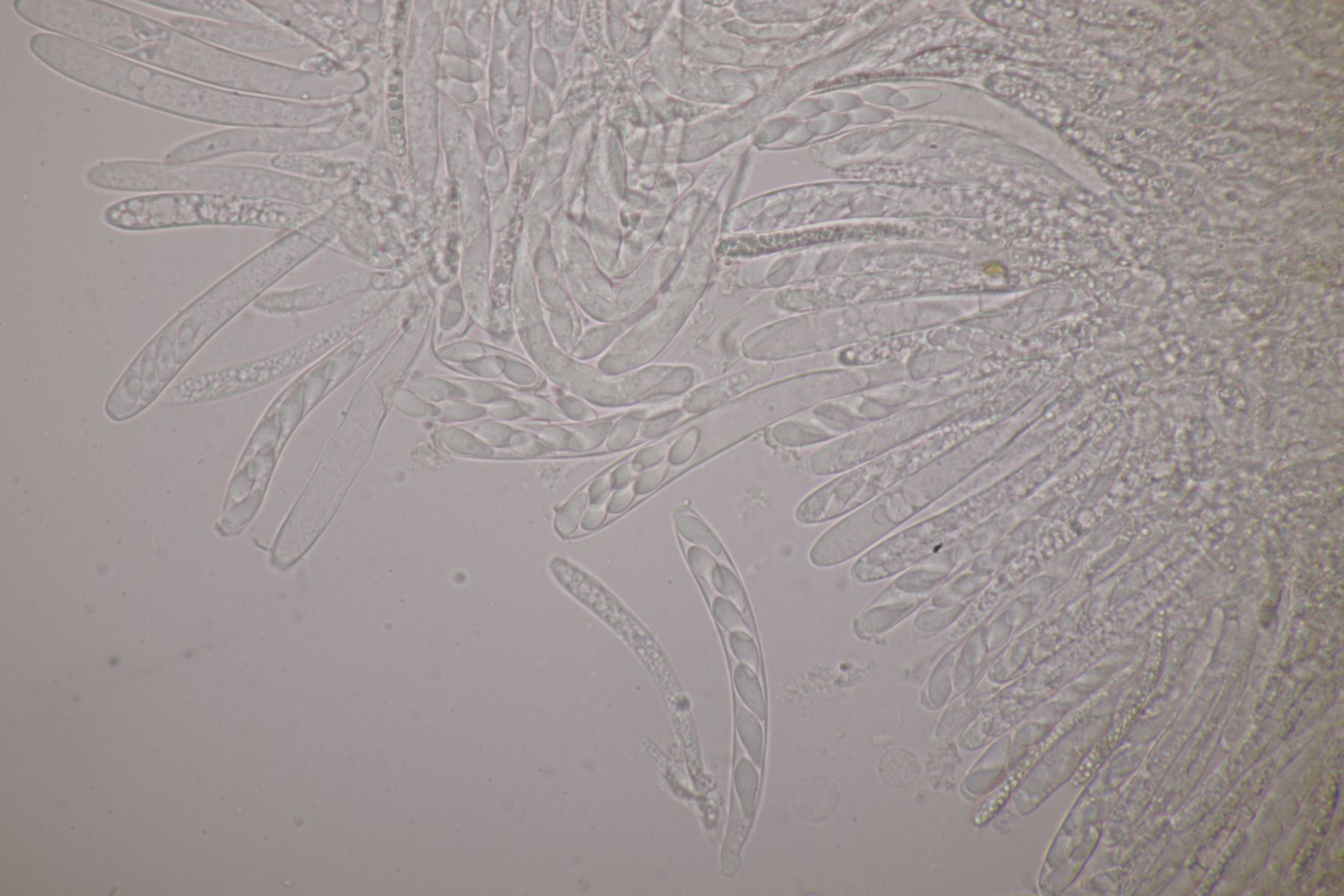 6. Und noch ein Fund auf Mollinia. Leider war die weiße Fruchtschicht mikroskopisch ohne Asci, Paraphysen oder Basidien.... deshalb gibt es nur Bilder der Randhaare und ein dickes Fragezeichen dazu.