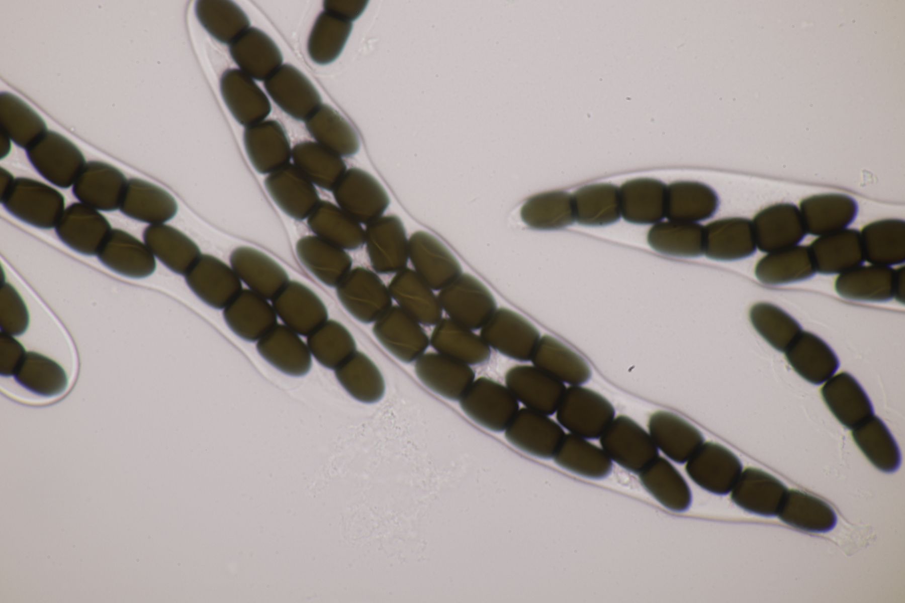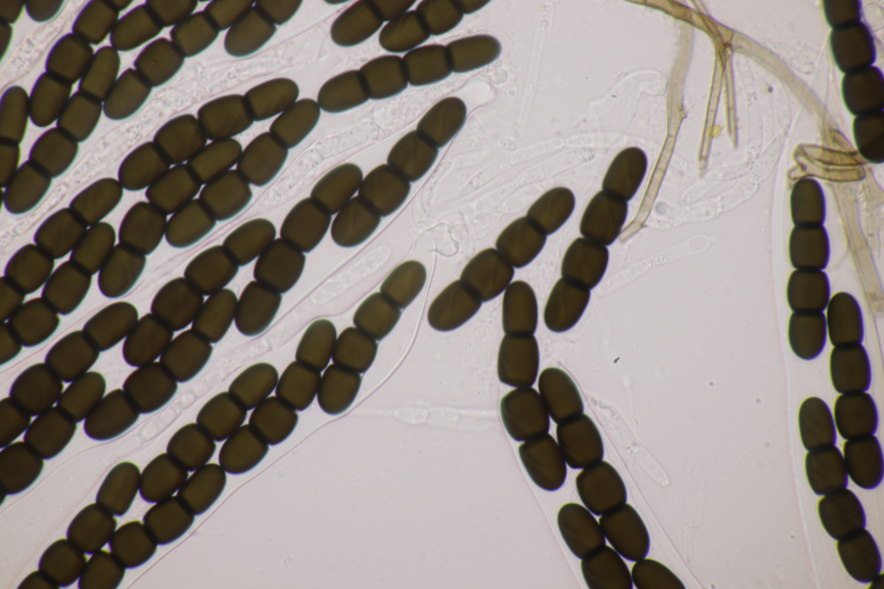 13. Auf den Kötteln gab es Chasmothecien(?), die ellipsoid und relativ groß waren... innen dann zur Überraschung nur diese braunen, vierzelligen Konidien. Da fehlt mir leider jegliche Idee. Konidiogene Zellen oder der gleichen habe ich leider nicht entdeckt.