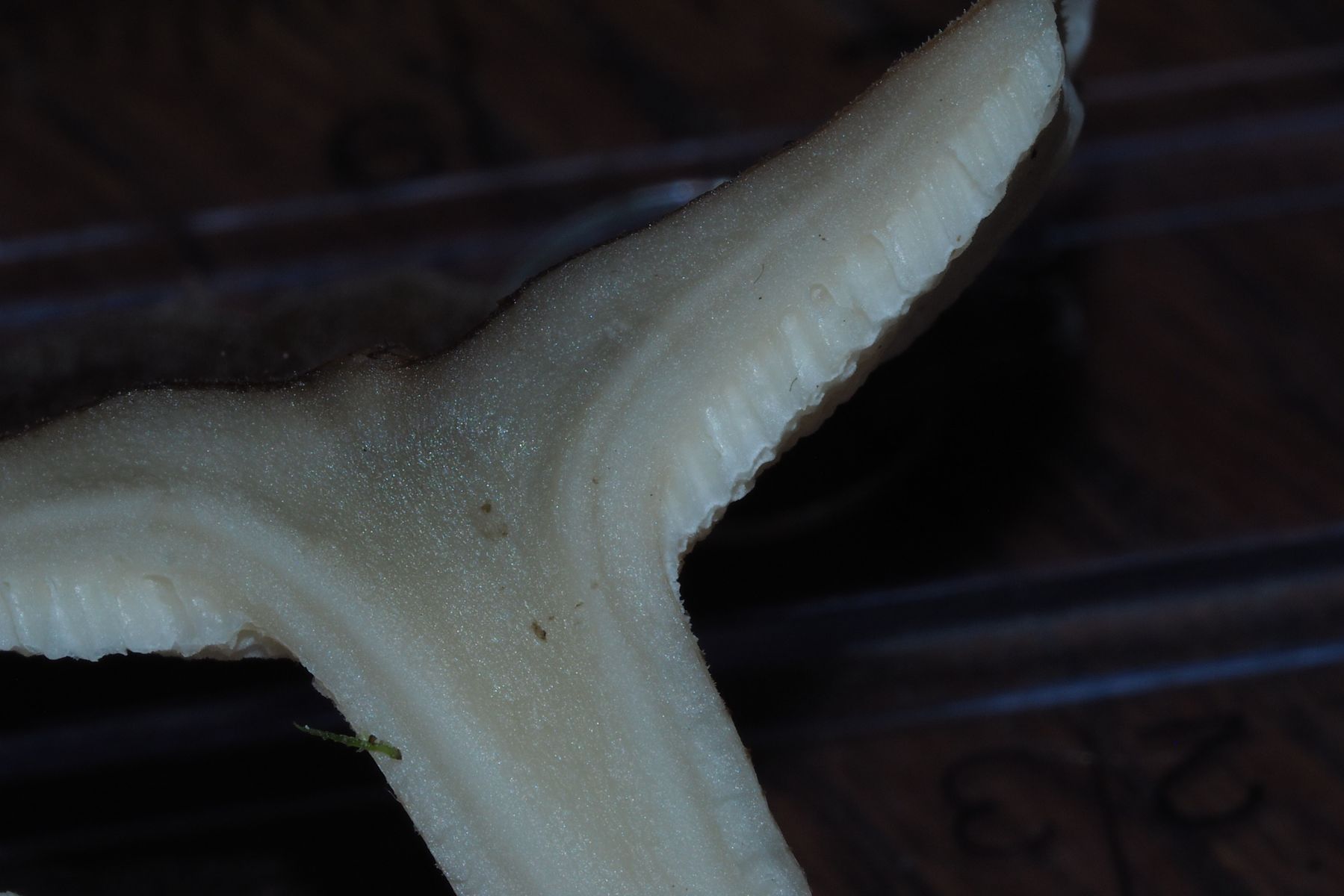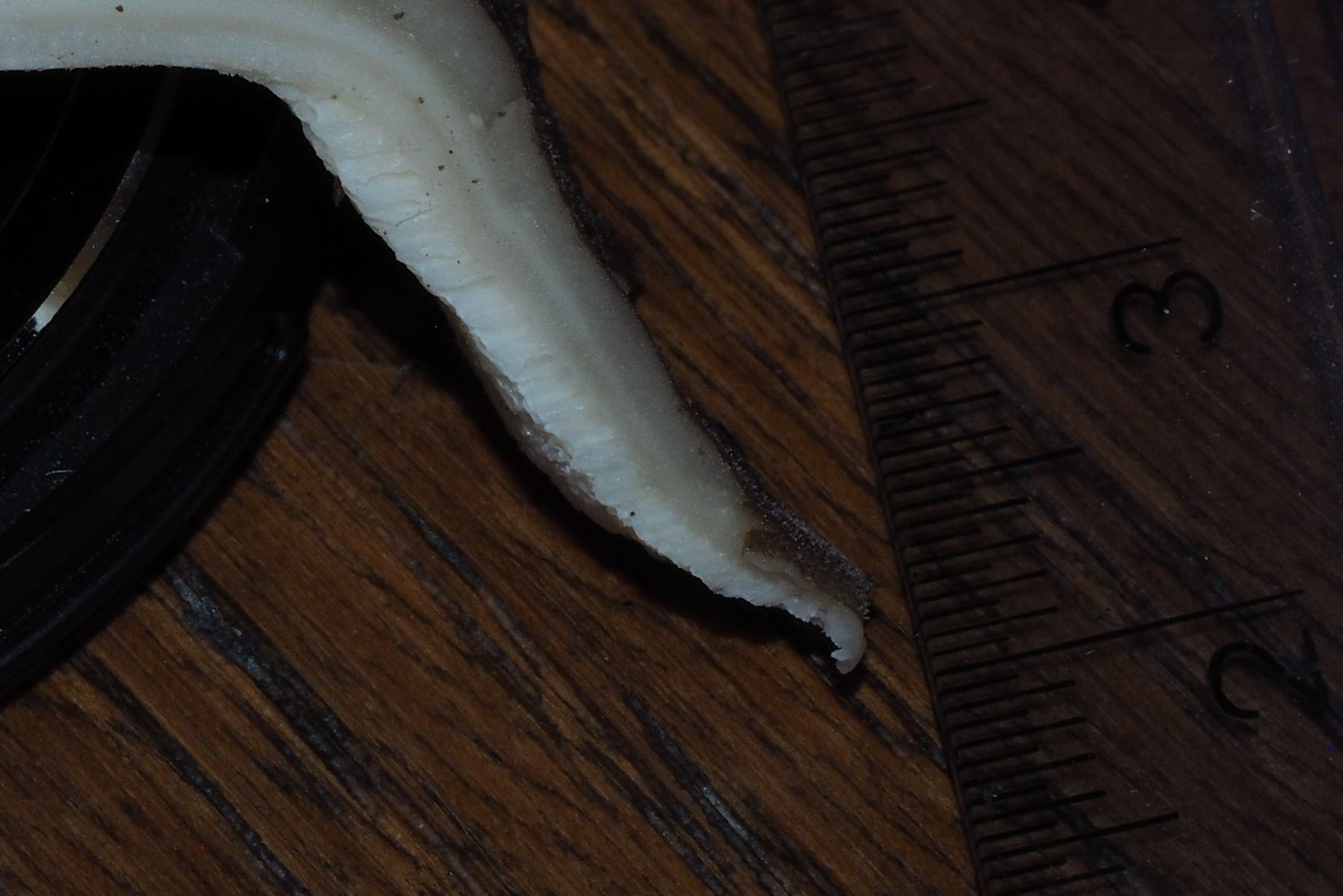 Bild 5 Querschnitt mit Lineal, die feinfilzige Hutoberfläche ist zu erkennen