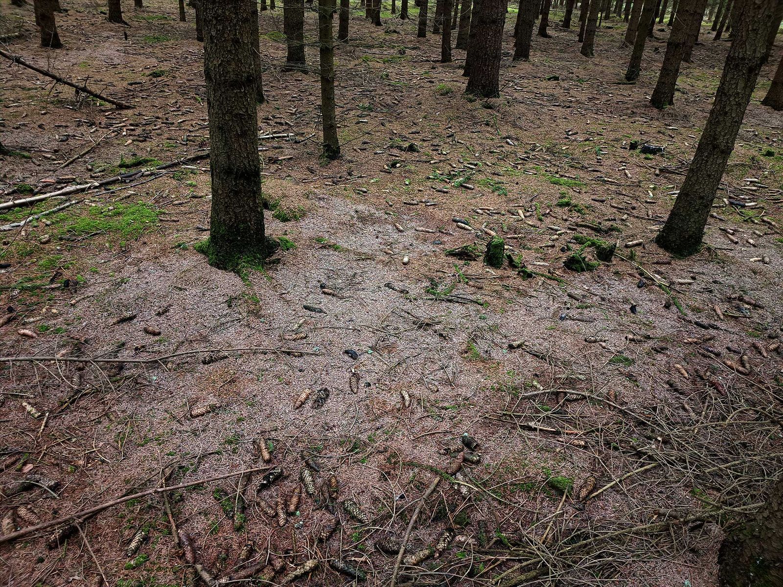 großflächiger Pilz auf Fichtennadelstreu