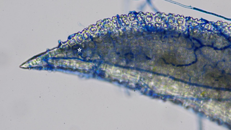 diese Moosfresser sind mir auf den letzen Touren mehrfach an verschiedenen Moosarten aufgefallen. Sie sind für die Moose 100% letal und offenbar ziemlich virulent da auch in augenscheinlich gesunden Mooskolonien zu finden. Mikroskopisch fand ich nur Hyphen, teils inkrustiert. Im Randbereich finden sich auf den infizierten Moosblättchen teilweise kleine leicht ablösbare weisse Kügelchen, mikroskopisch sind diese aber ebenfalls nur mit Hyphen gefüllt. Keine Konidien, keine Sporen. Kann es sein dass dieser Pilz sich einfach mit diesen Hyphenbällchen verbreitet?