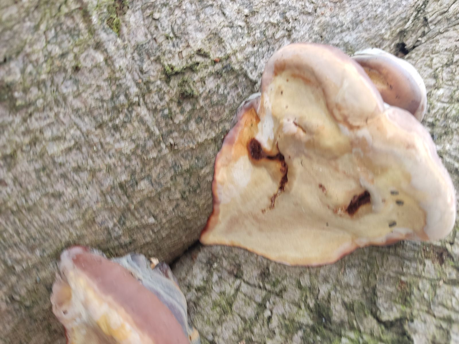 Habe heute an toter, abgebrochener Buche violette Lackporling gefunden, sind es nun flache oder harzige?