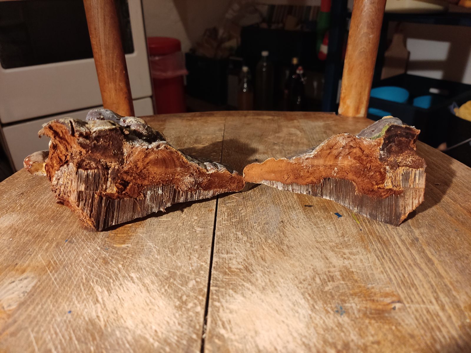 Alle im Wurzelbereich, das Innenleben denk ich sieht aus wie applanatum, es war in Resten ockriges Sporenpulver am Hut, Hut ist eindrückbar und schmilzt?!