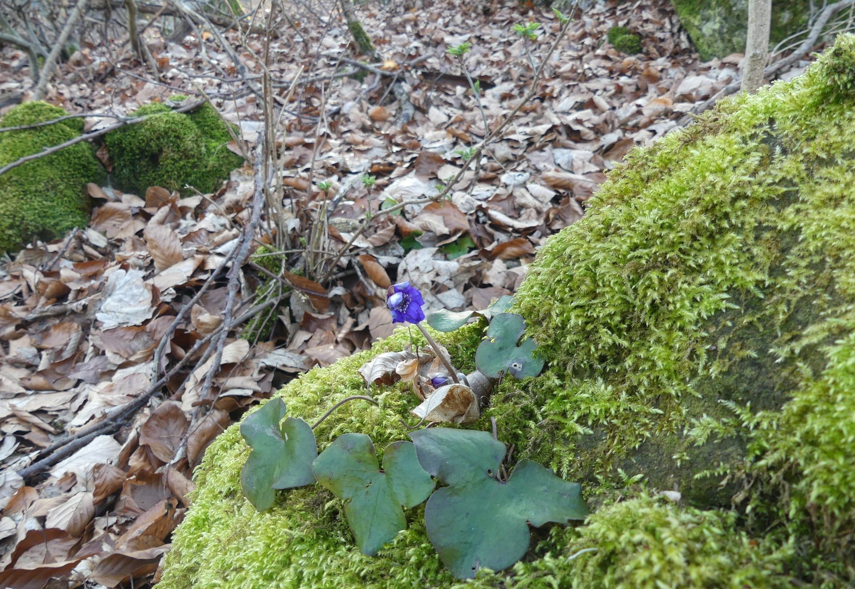In einem ansonsten absolut blütenfreiem Waldstück blühte ein einzelnes Leberblümchen ausgerechnet auf einem Fels - ich fand dies faszinierend und ein Foto wert.