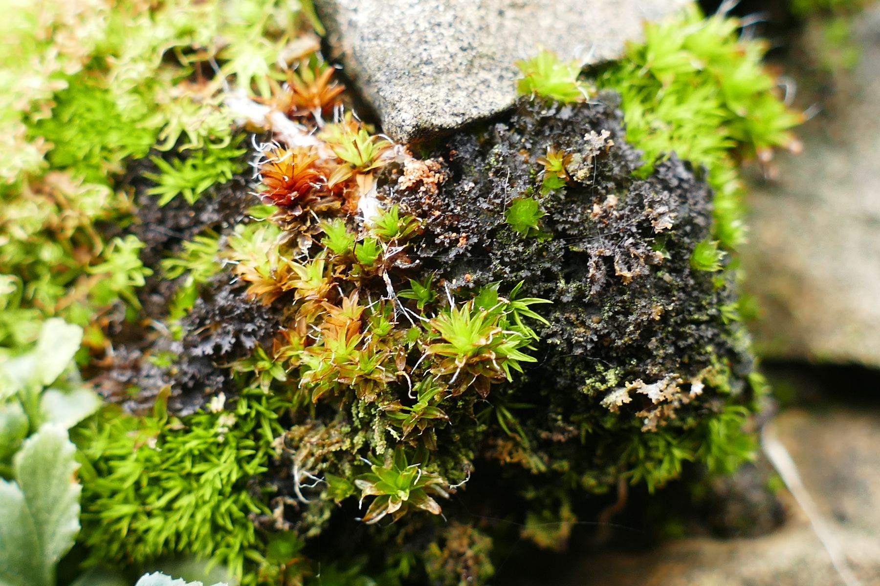 Bild 3 Inspektion von Flechten in Moosnähe (hier: Leptogium lichenoides)