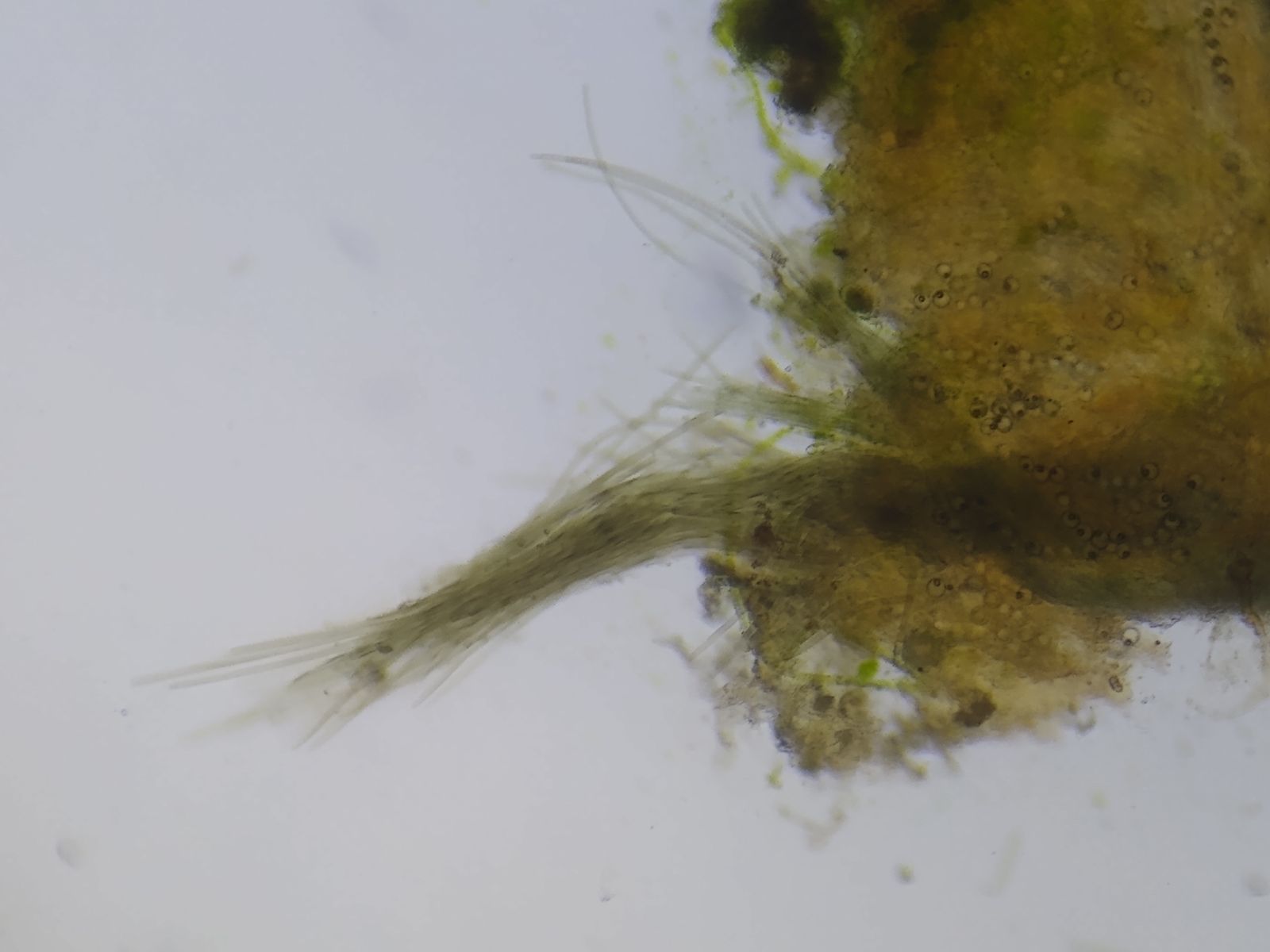 Die Fruchtkörper sind so eng in die Blattachseln geschmiegt, dass ihre Randbehaarung erst unter dem Mikroskop sichtbar wird: