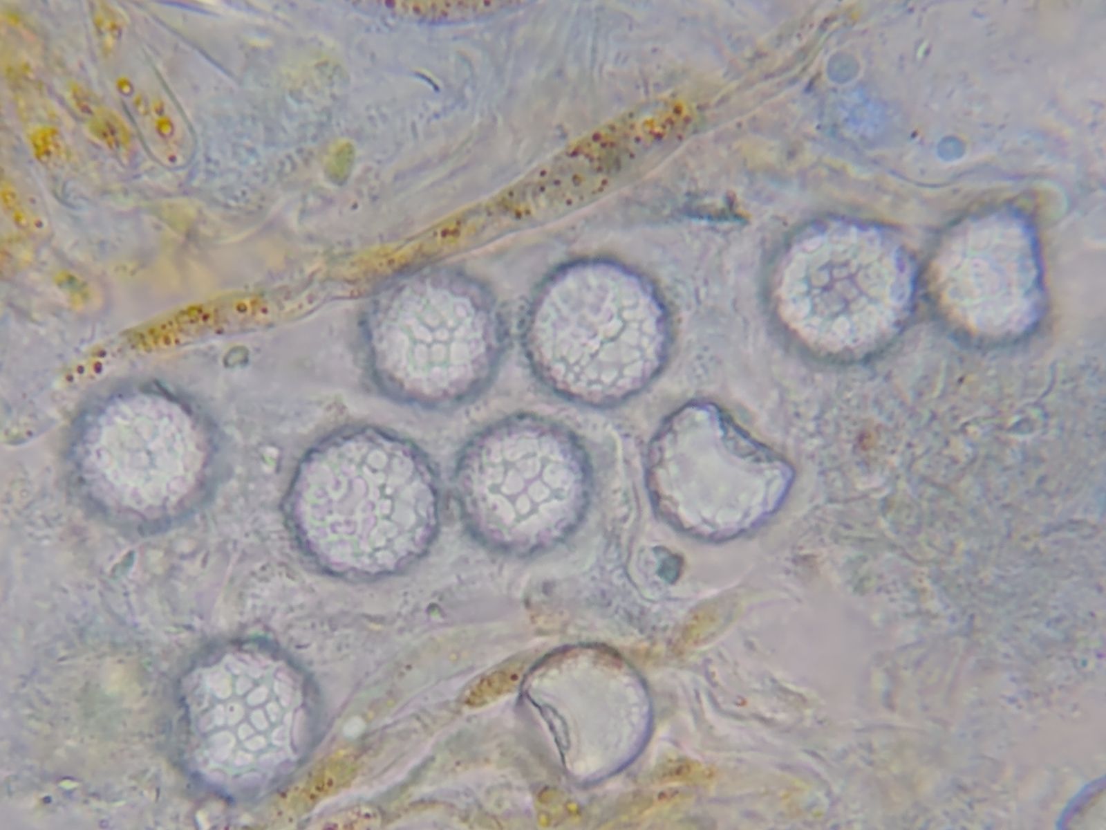 Die Sporenmaße bestimme ich zu 16-17 x 13,5-16 µm.