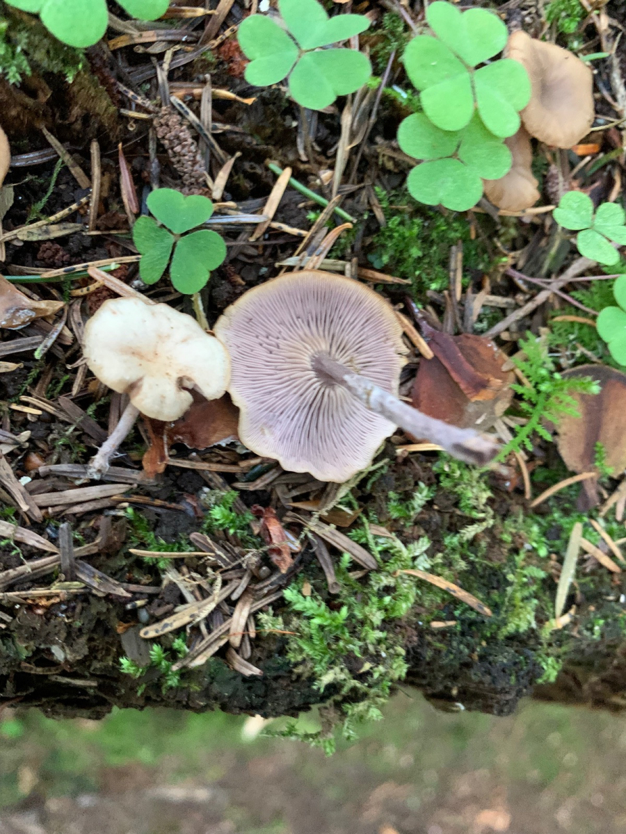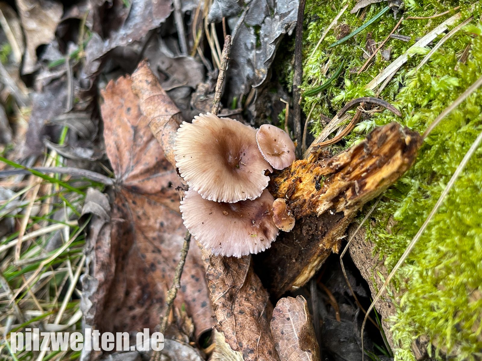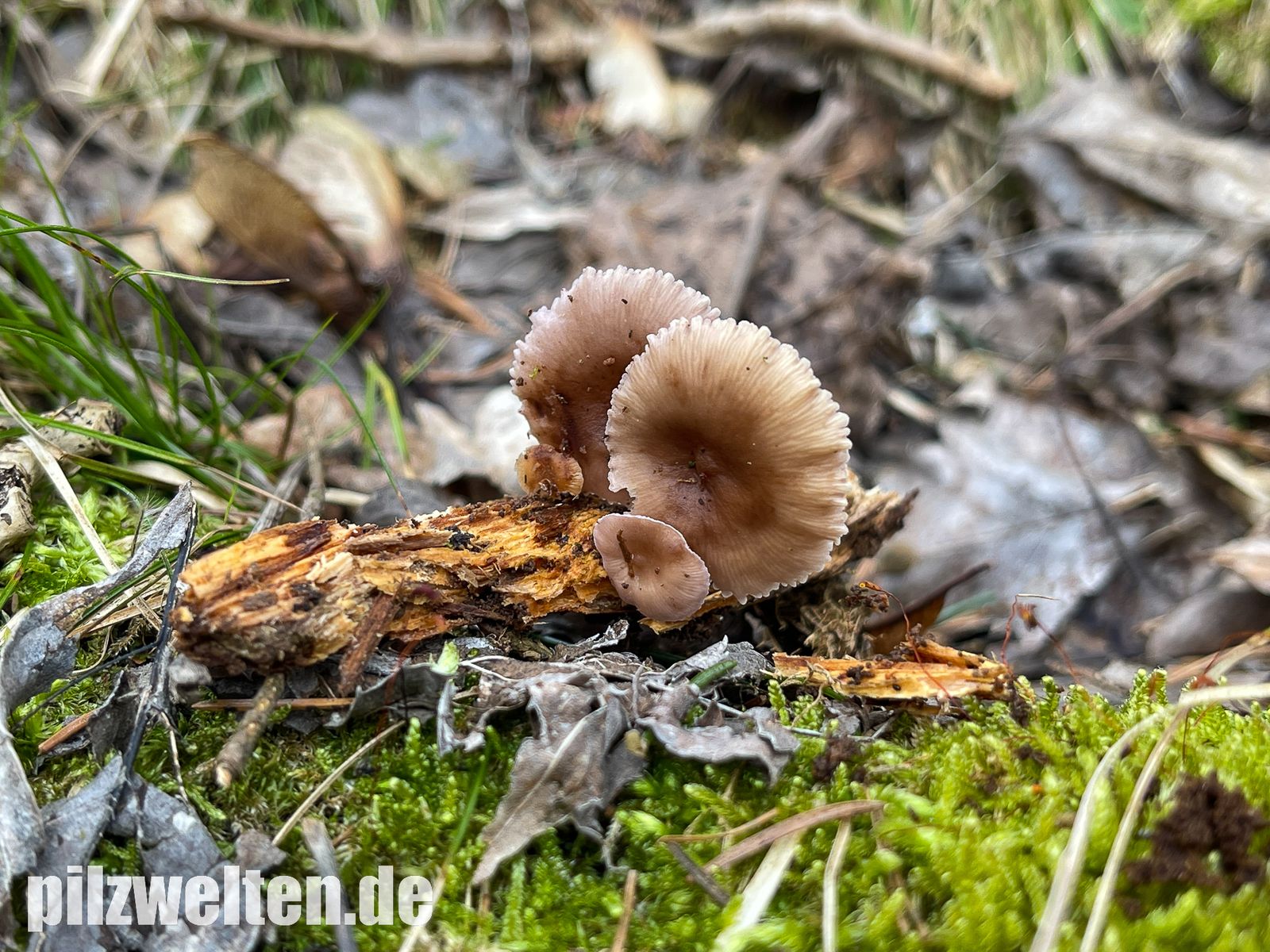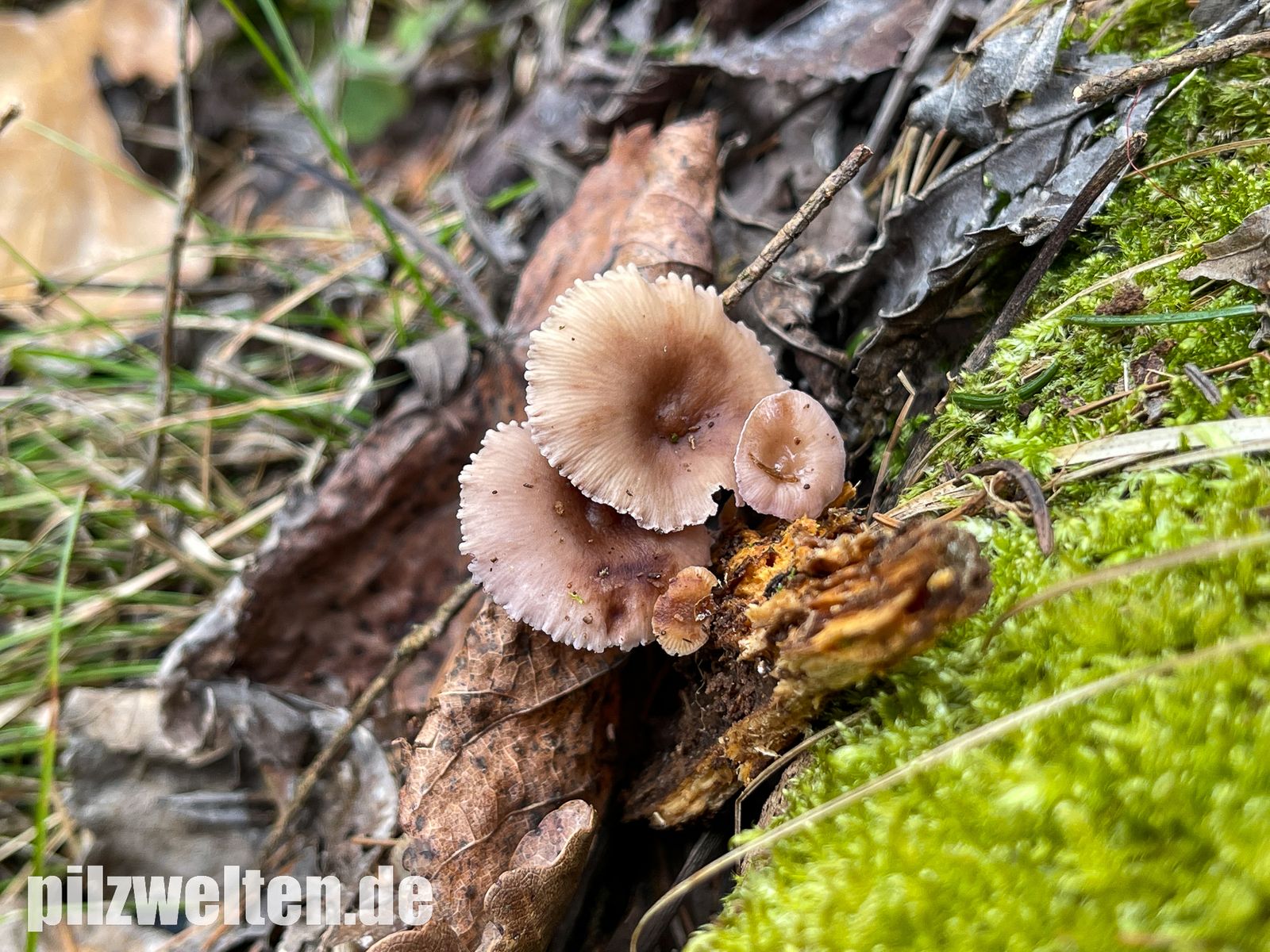 Besonderheiten: Hutmitte vertieft & mit Buckel, Auffällig gezackter & geriefter Hutrand, dicht stehende Lamellen mit vielen Zwischenlamellen v. a. am Hutrand, Lamellen (nicht nur auf den Bildern) ganz dezent violettstichig, Stiel bei großen Exemplaren hohl, Basis mit auffälligem (weißlichem) Myzelfilz, Folgezersetzer / auf Totholz (höchstwahrscheinlich Nadelholz / Fichte)
