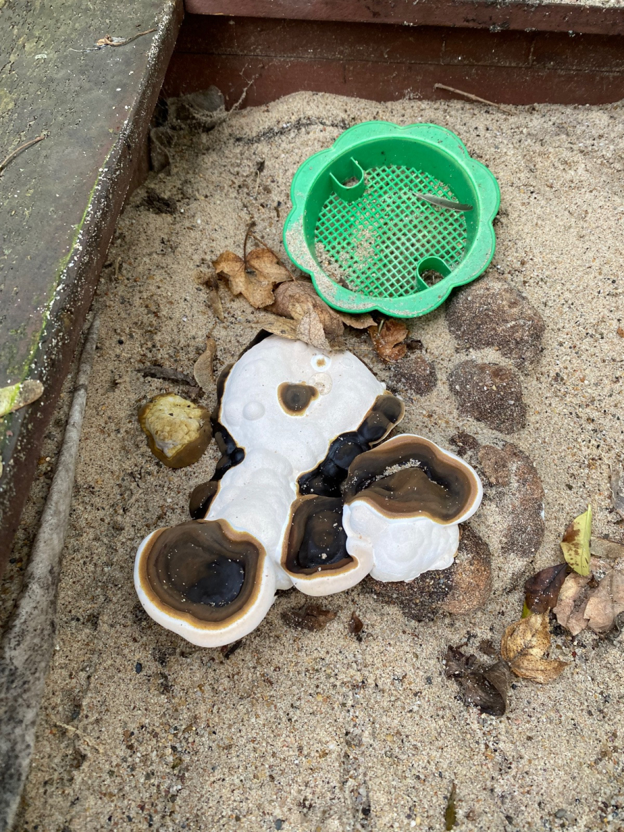 Mich würde da weniger der Pilz stören als der Sandkasten an für sich und die Befüllung. Vielleicht bringt der Osterhase ja einen neuen Sandkasten. LG