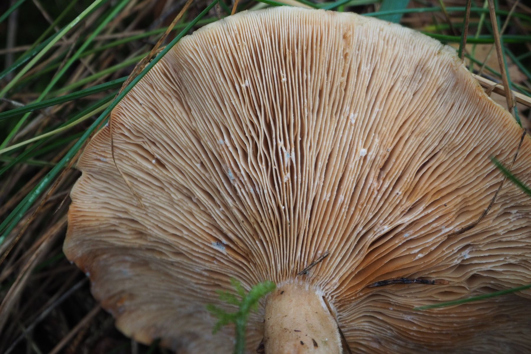 Bild 2: Die gedrängt stehenden Lamellen mit den bläulichen Flecken