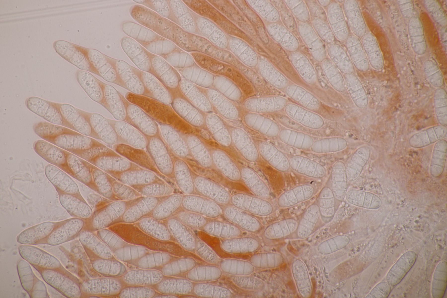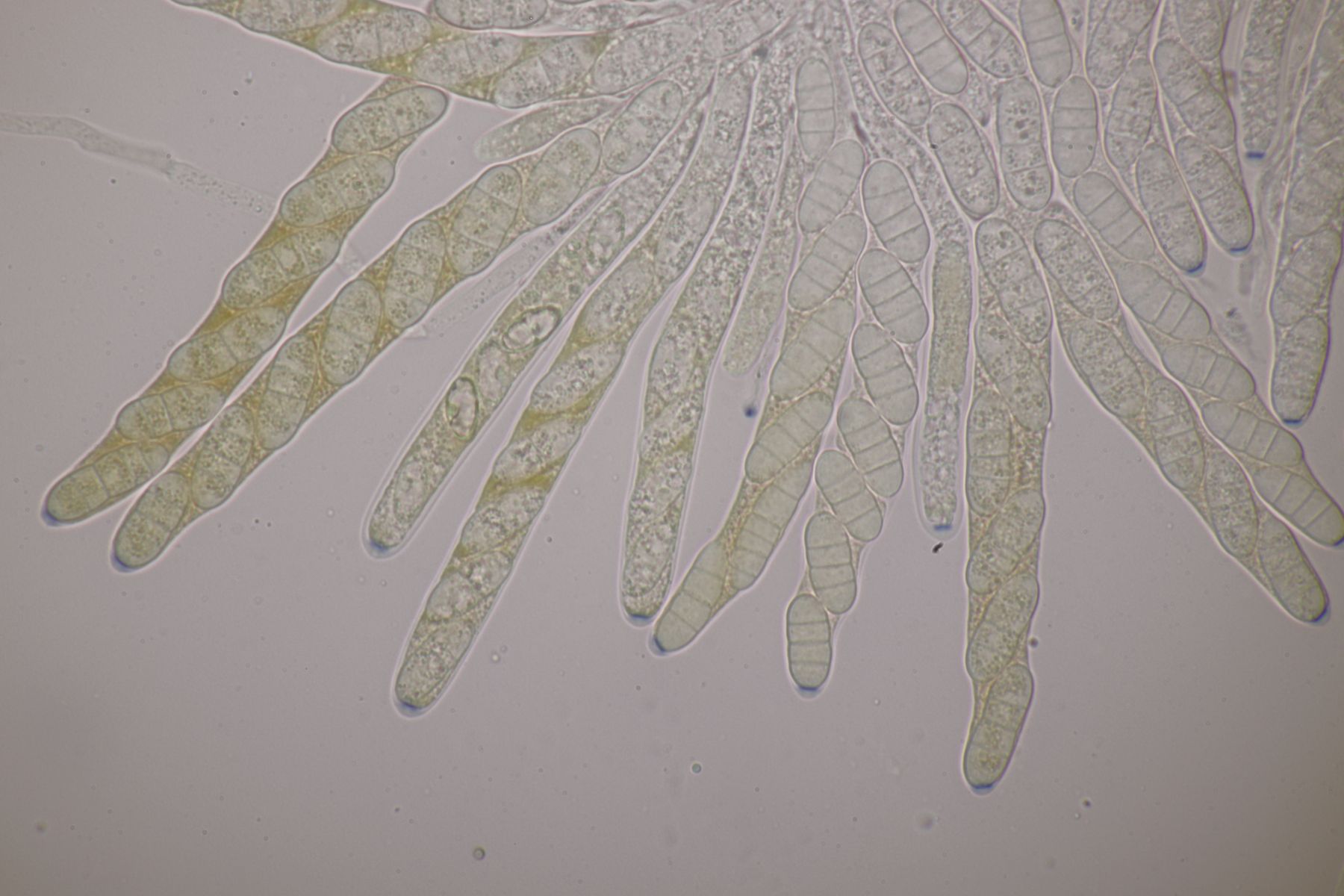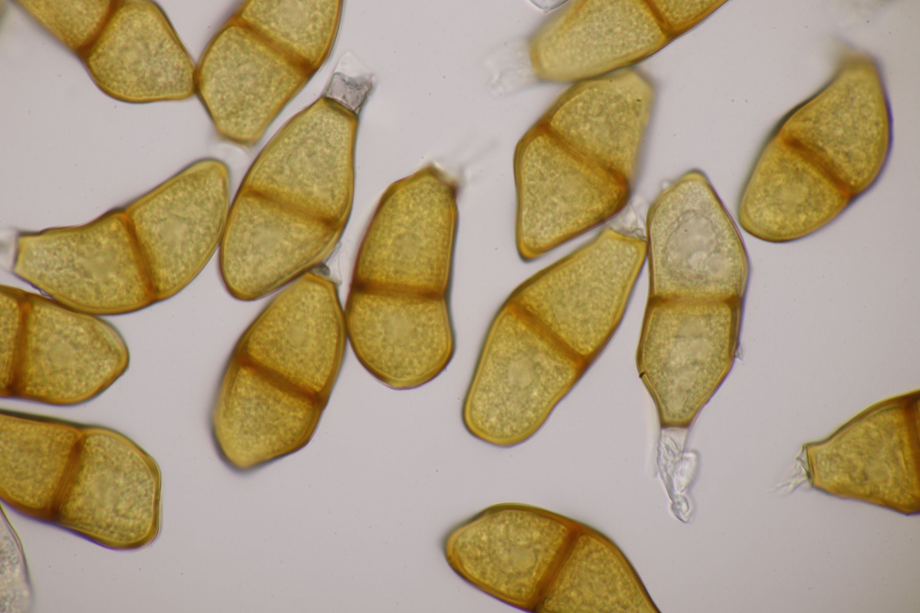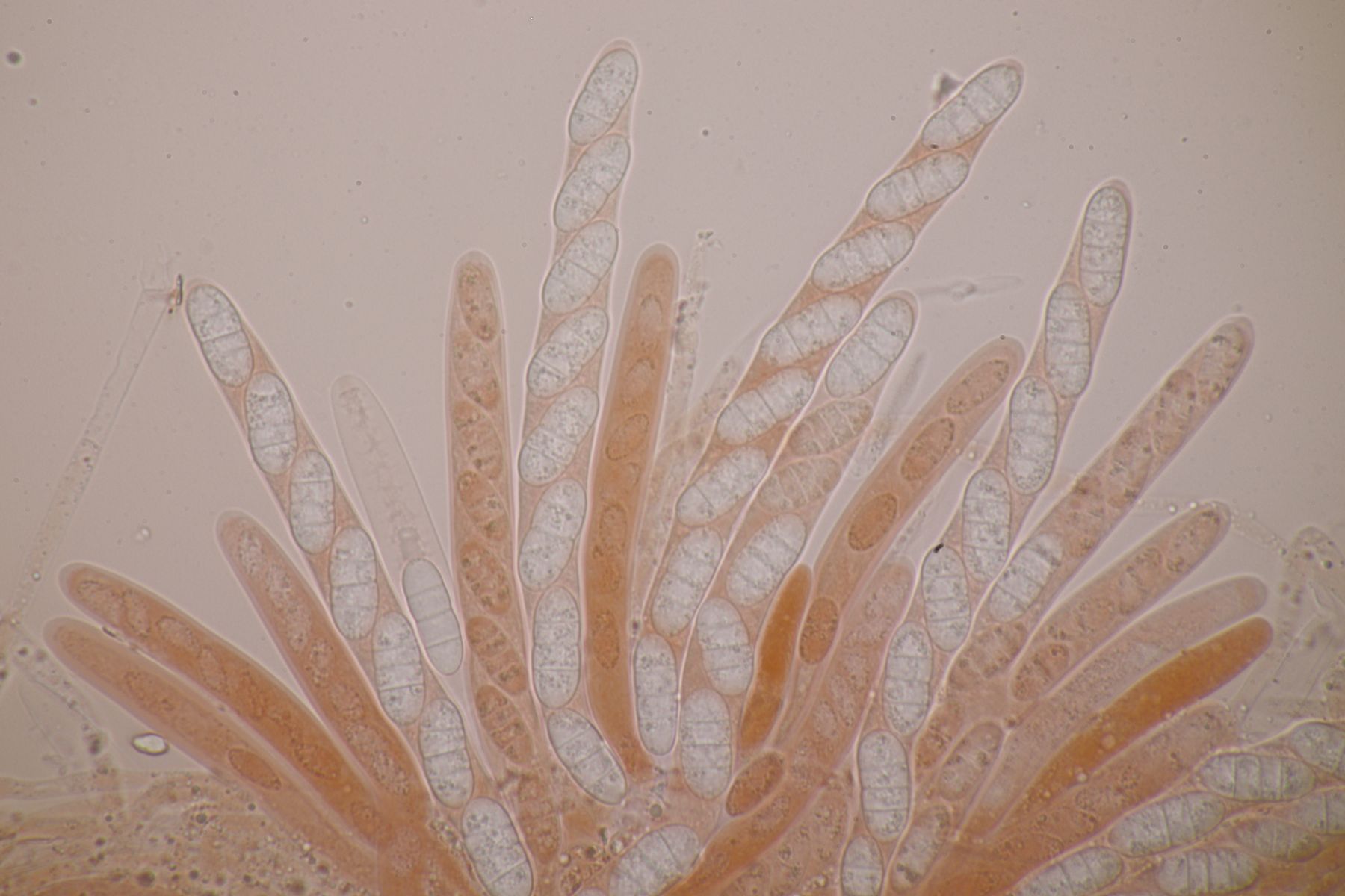 1. Discostroma corticola bzw. mittlerweile Seimatosporium lichenicola auf Rosa sp. Sporen messen 16.6-18.9 µm x 5.6-8.3 µm