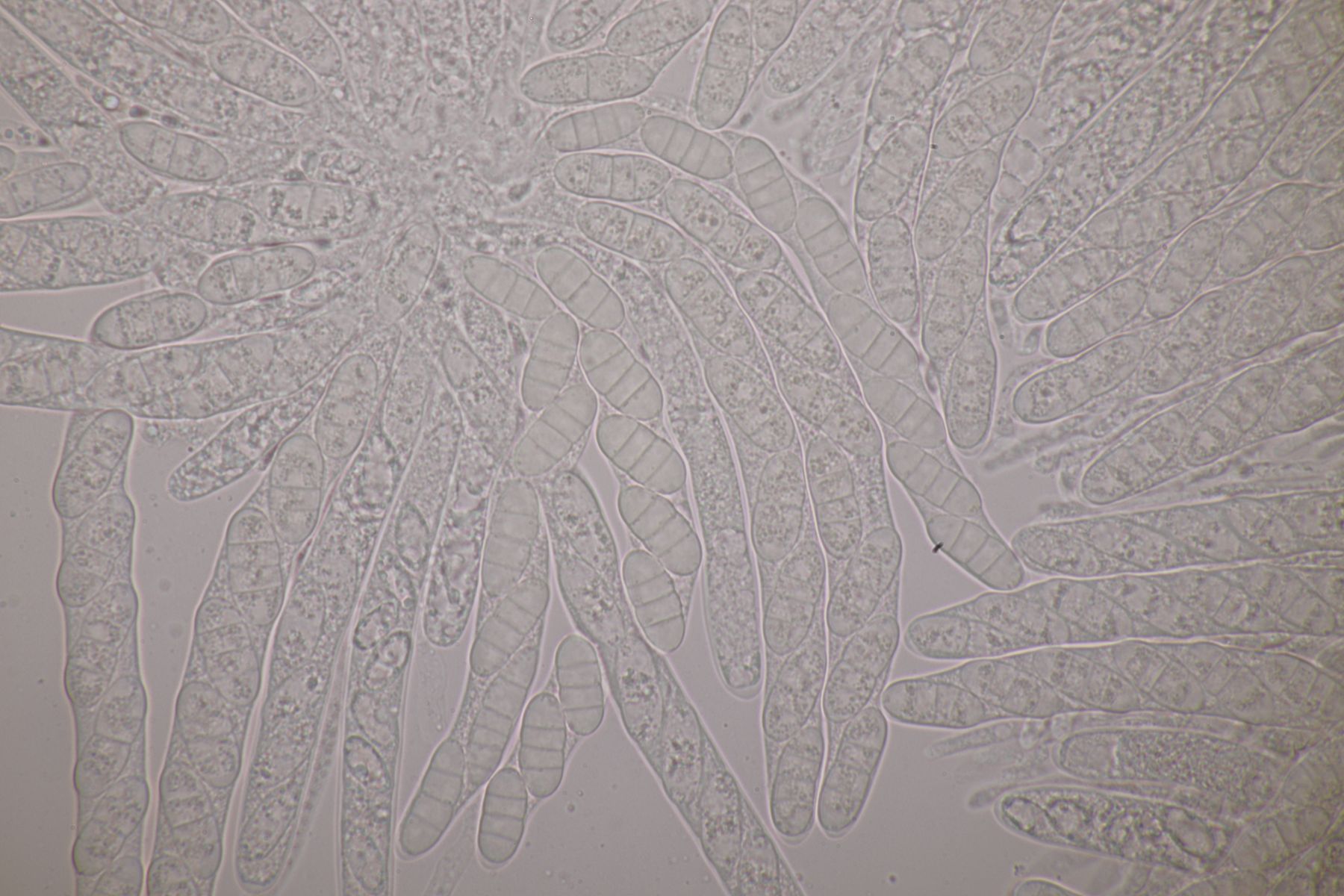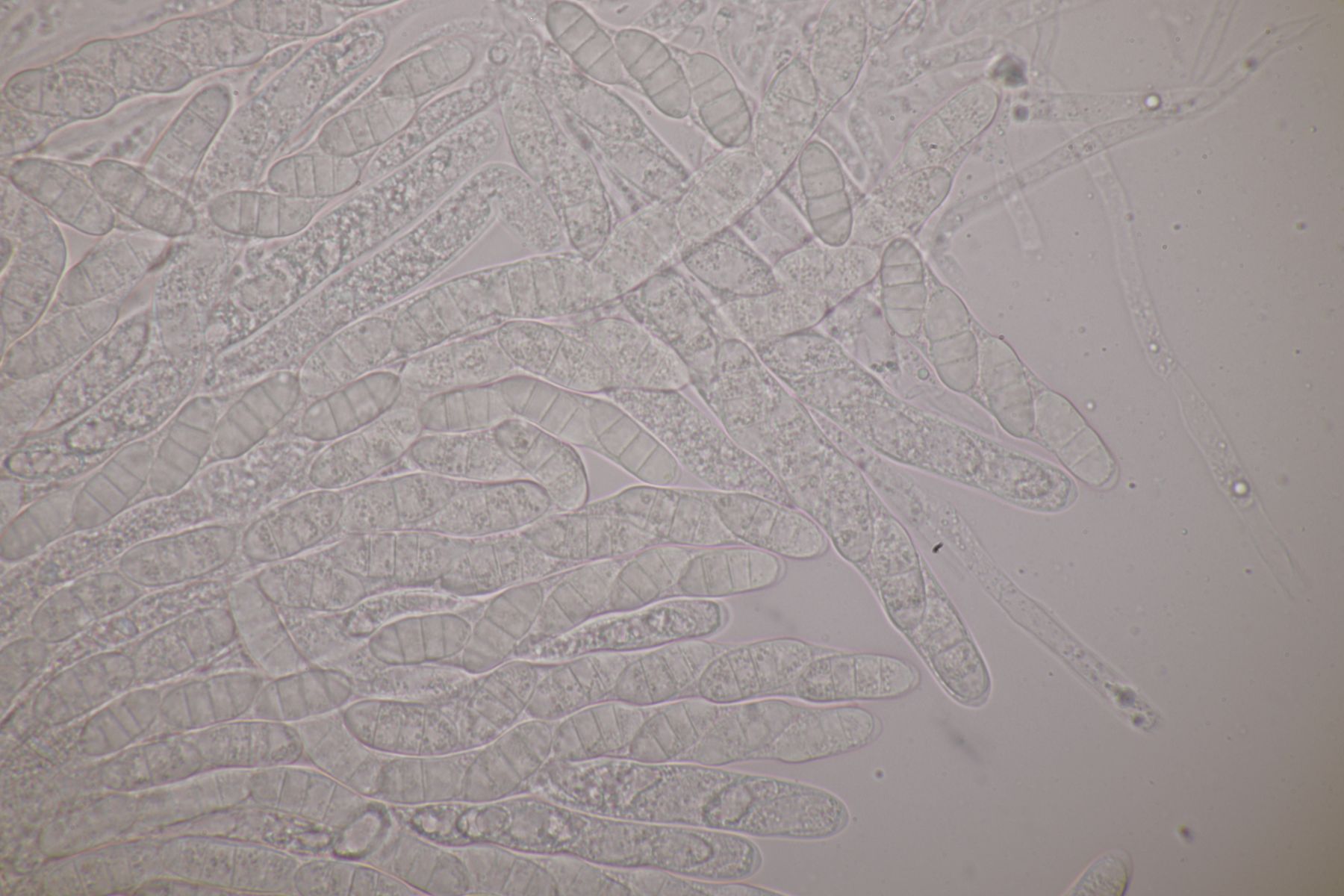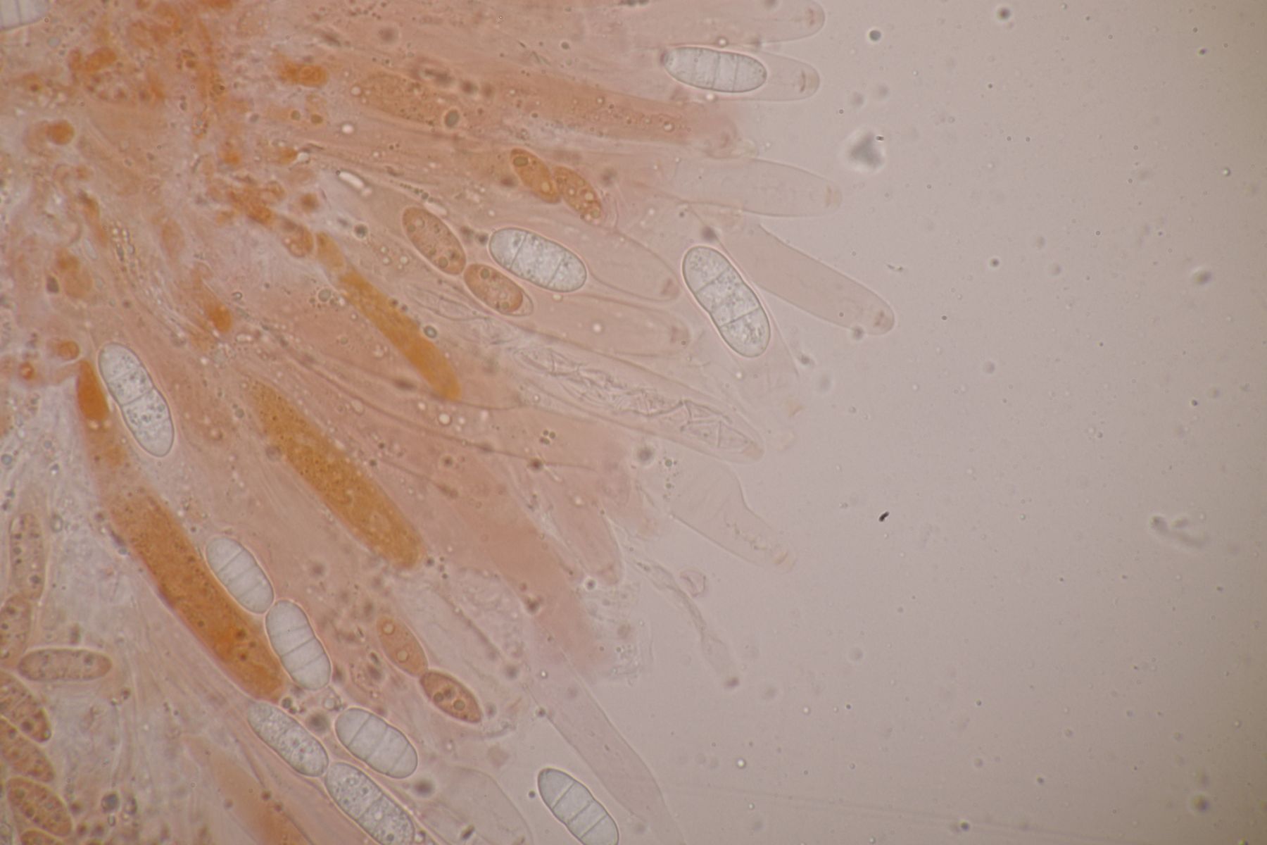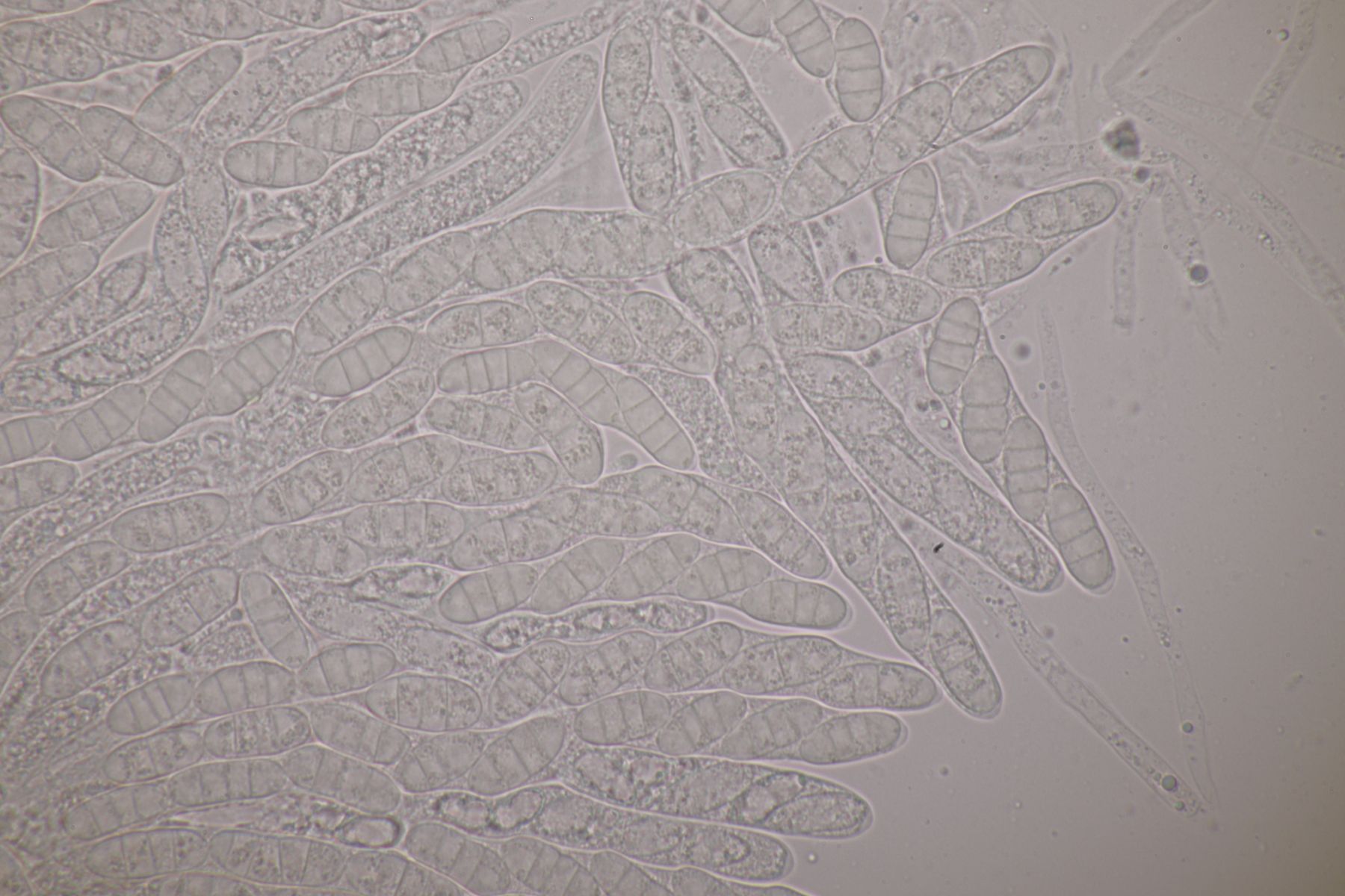 1. Discostroma corticola bzw. mittlerweile Seimatosporium lichenicola auf Rosa sp. Sporen messen 16.6-18.9 µm x 5.6-8.3 µm