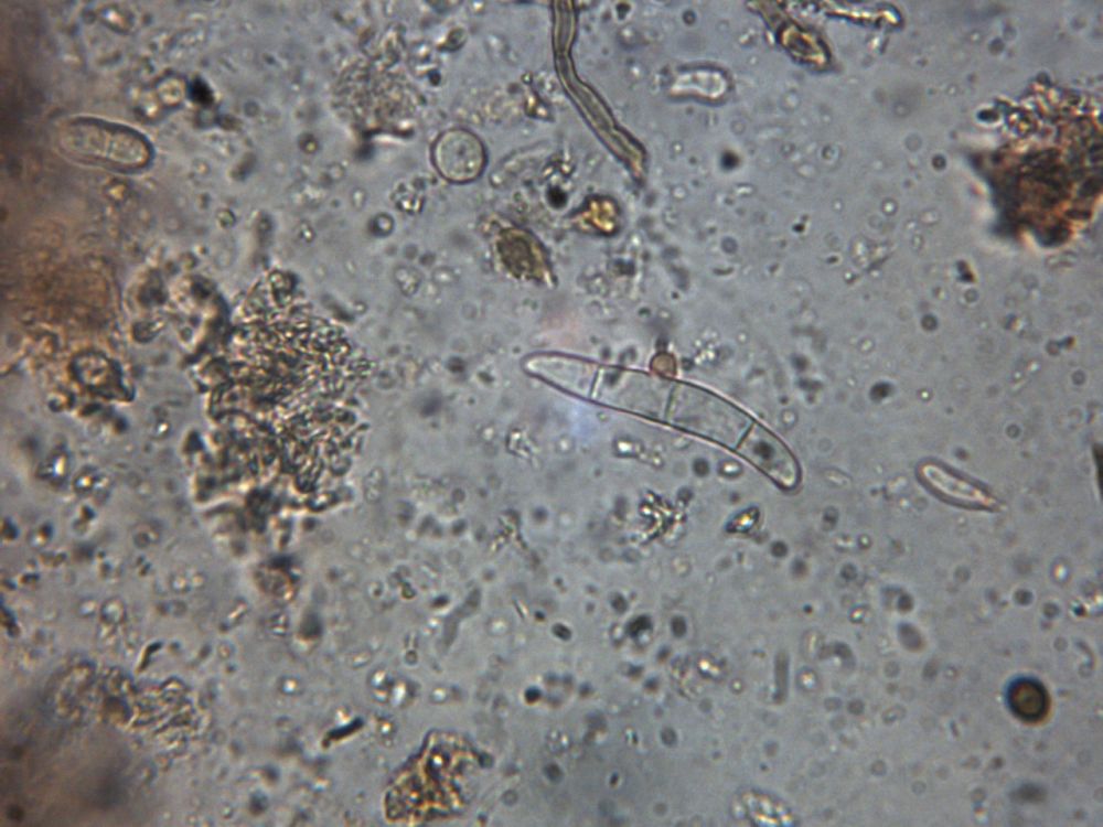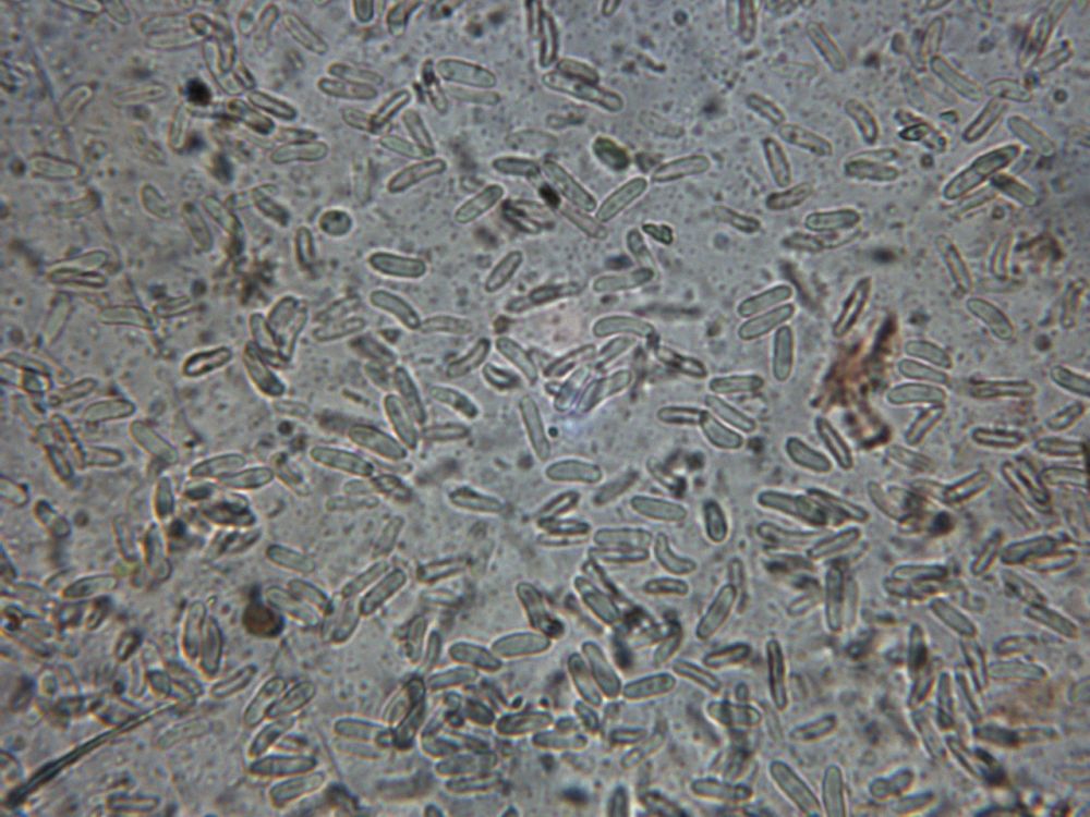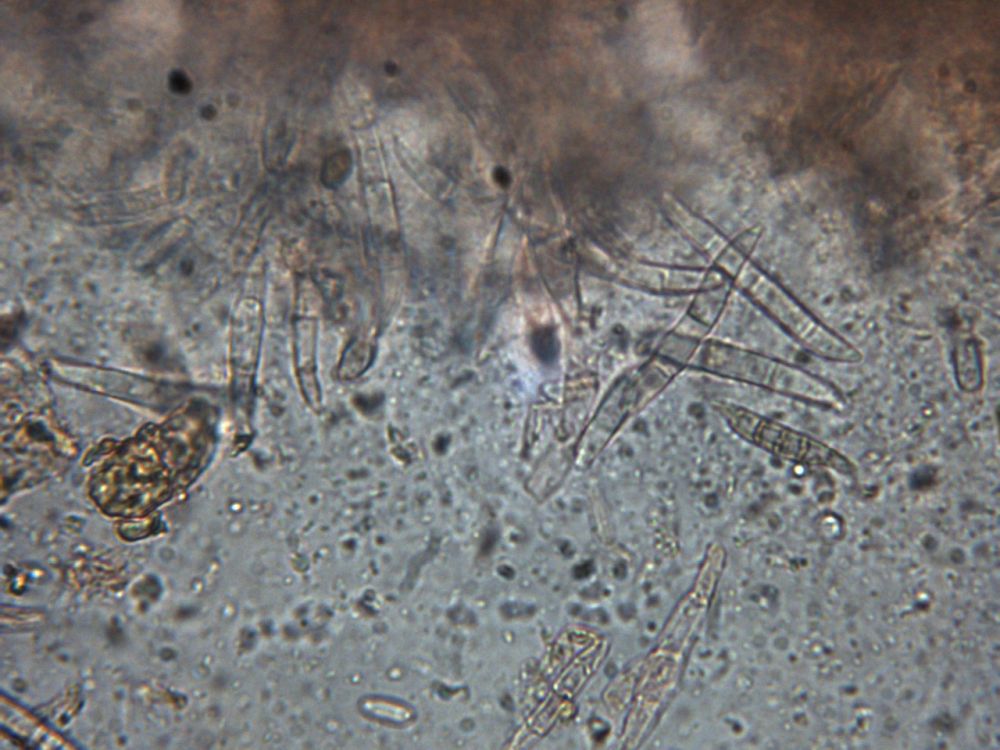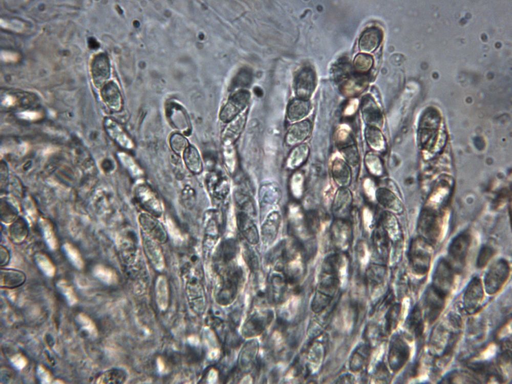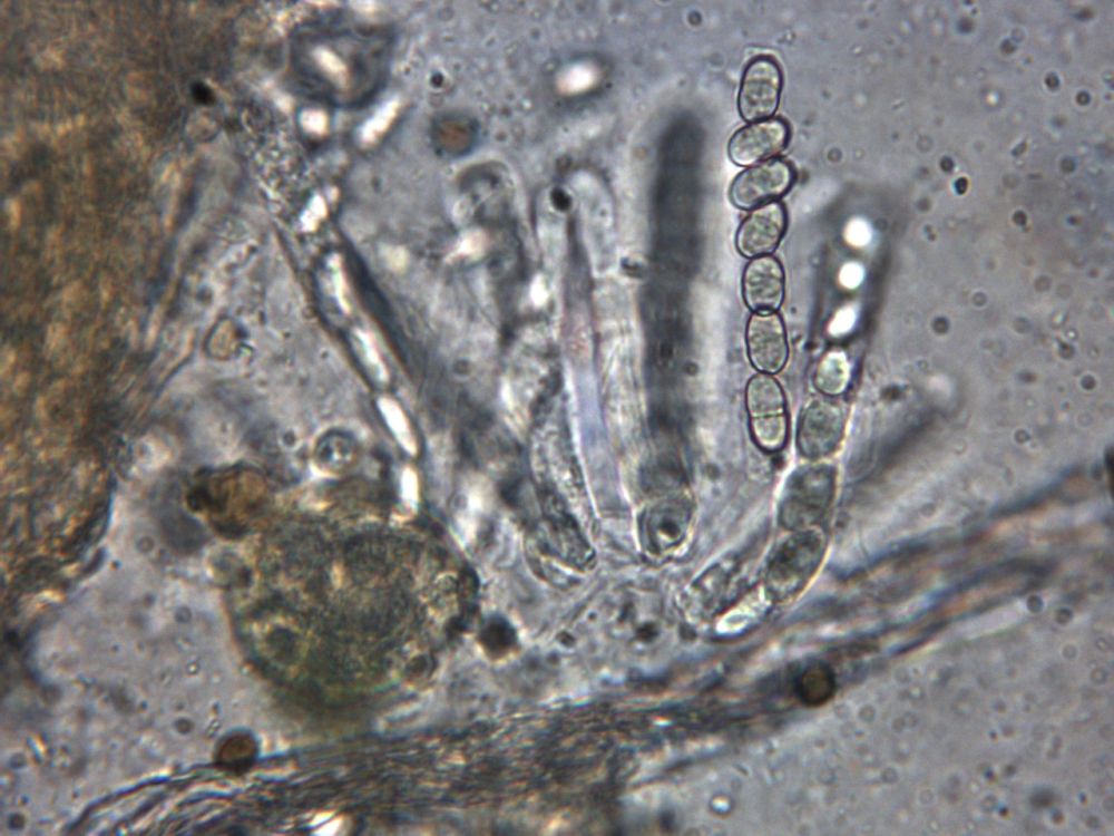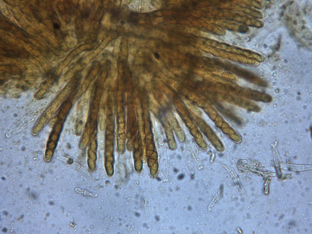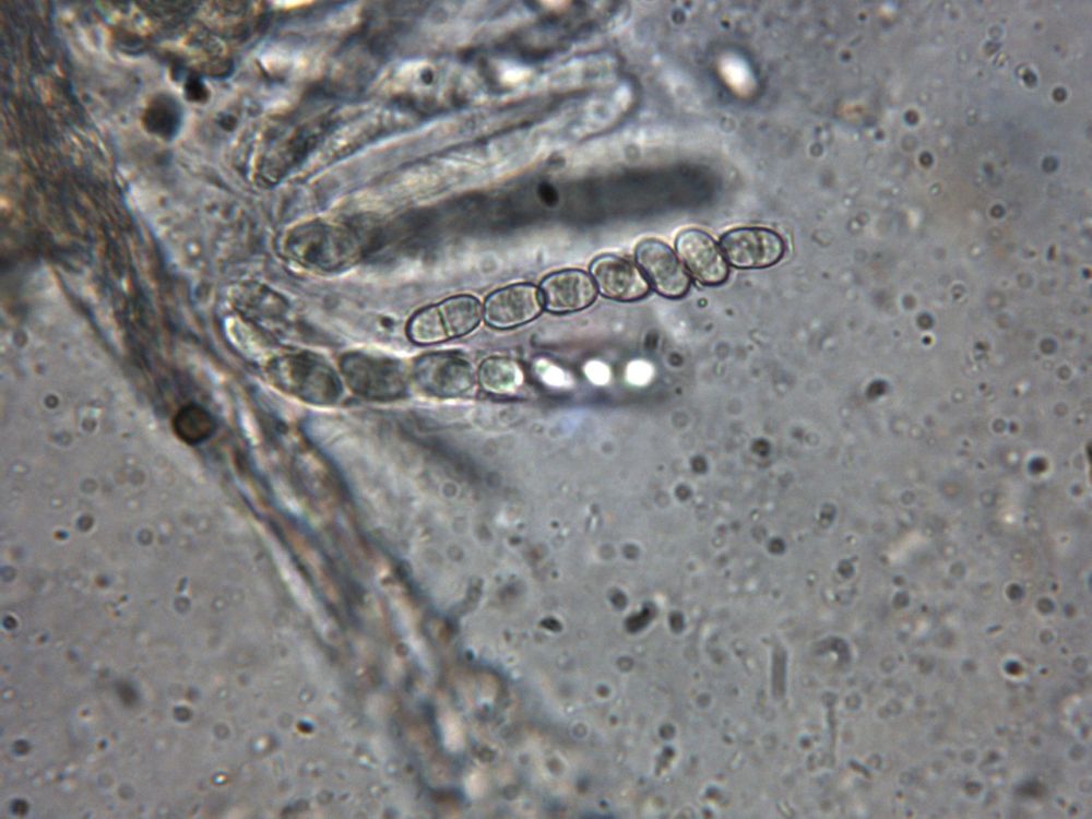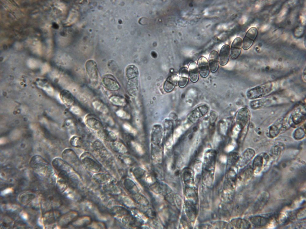 Sporen: 10 - 11,2 x 4,5 - 4,9 µm, 1 Septe