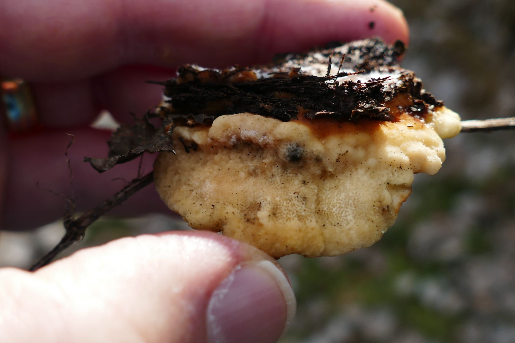 Als ich ihn vom Holz rupfte, war der Pilz noch elastisch.