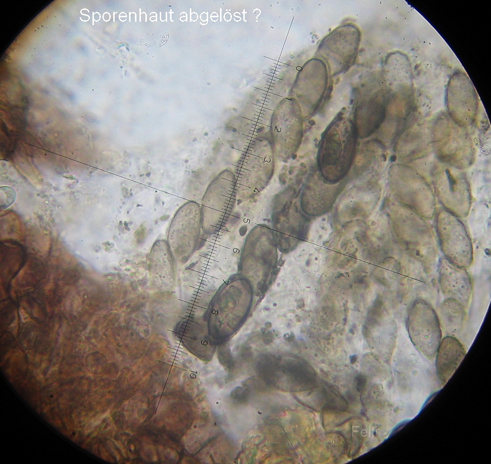 Was mir interessant vorkommt ist die Farbe der überreifen Sporen bei denen es so aussieht als wäre die äußer Sporenhülle abgelöst bzw ausseinder gerissen.