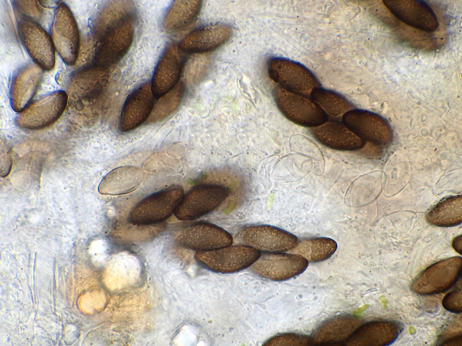 Sporen: (16.1) 17.1 - 18.9 (19.4) × (9.2) 9.3 - 10.8 (11.1) µm; Q = (1.6) 1.7 - 1.9 (2) ; N = 8. Me = 17.9 × 10 µm ; Qe = 1.8