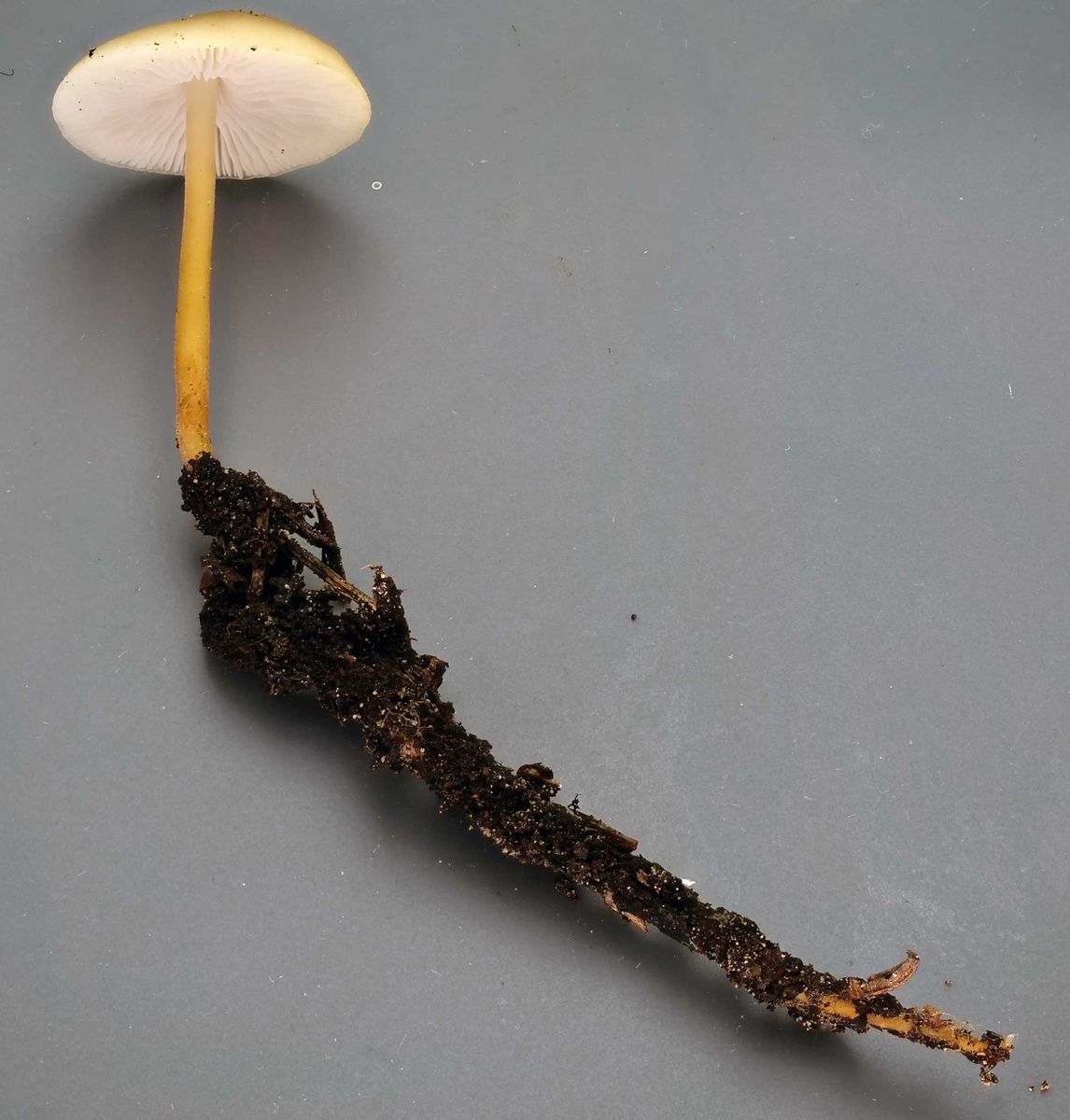 FiZaRü heißen u. a. deswegen so, weil sie eine Pseudorhiza bilden können, wenn sie eben nicht direkt am Zapfen wachsen. Die Pseudorhiza kann locker 10 cm und länger sein. Und dann scheint es eben so, das der Pilz mitten auf dem Boden, oder neben dem Zapfen wächst. Gräbt man jedoch vorsichtig nach, so wird man die Pseudorhiza bis zu einem Zapfen verfolgen können.