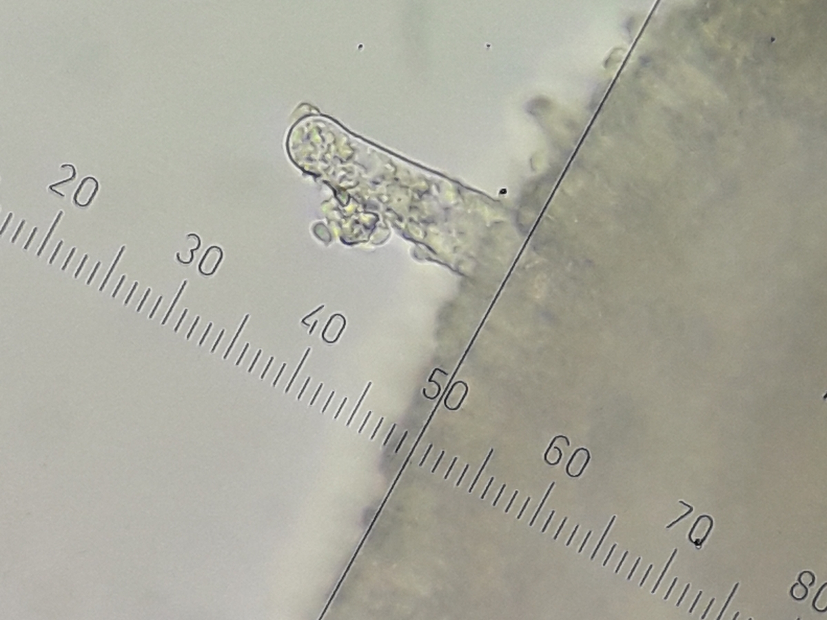 Ich mikroskopierte und fand sehr lange Caulozystiden (>100 Mikrometer).