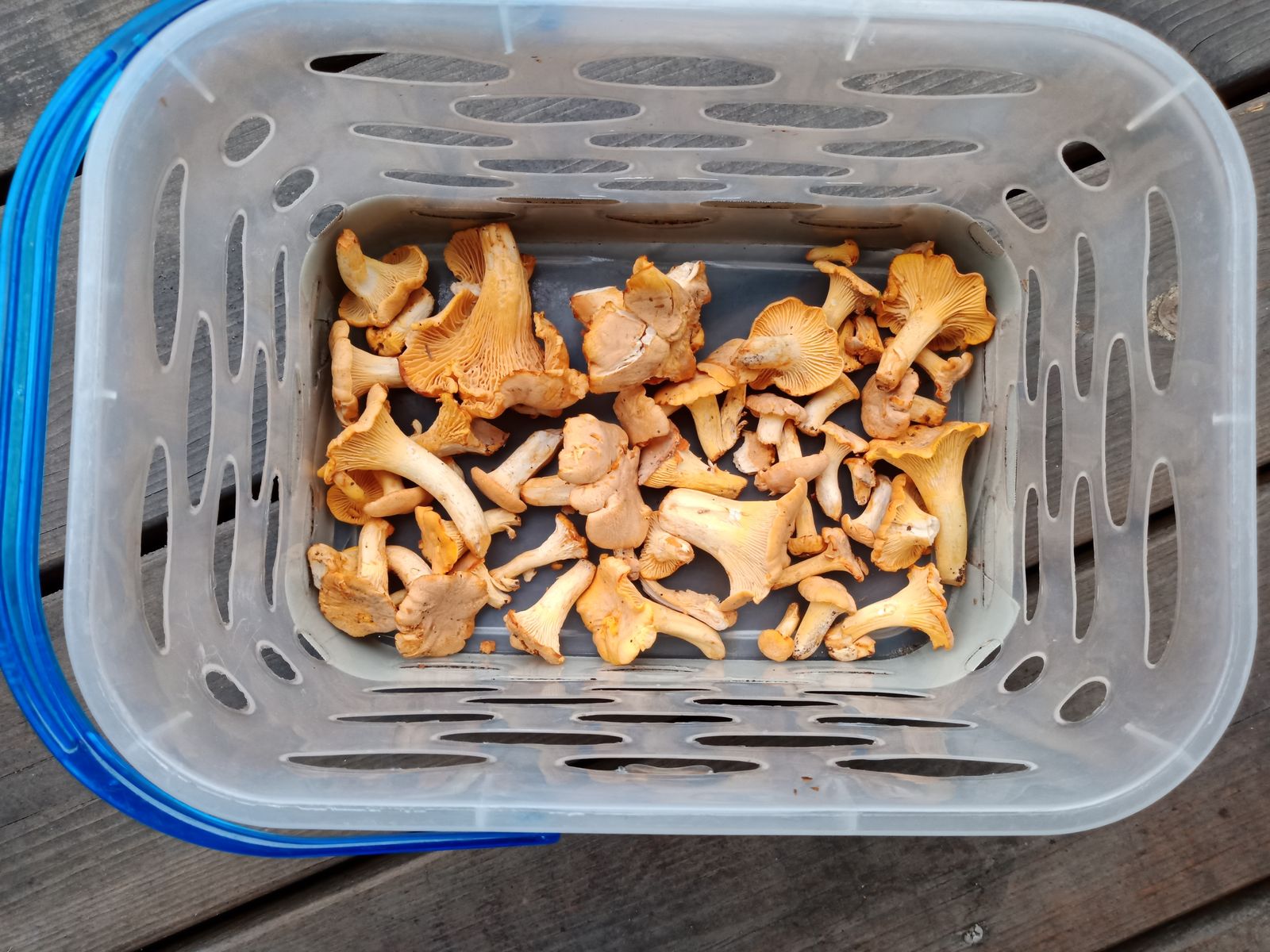 und an einem Buchenwaldweg wuchsen unmengen kleiner Pfifferlinge links und rechts am Weg.