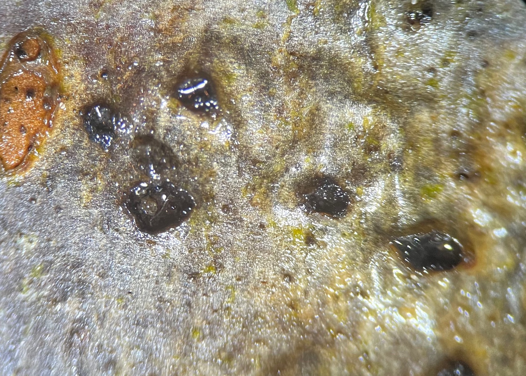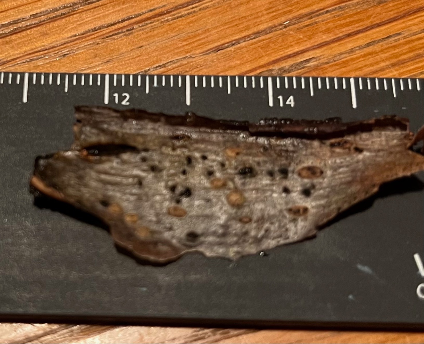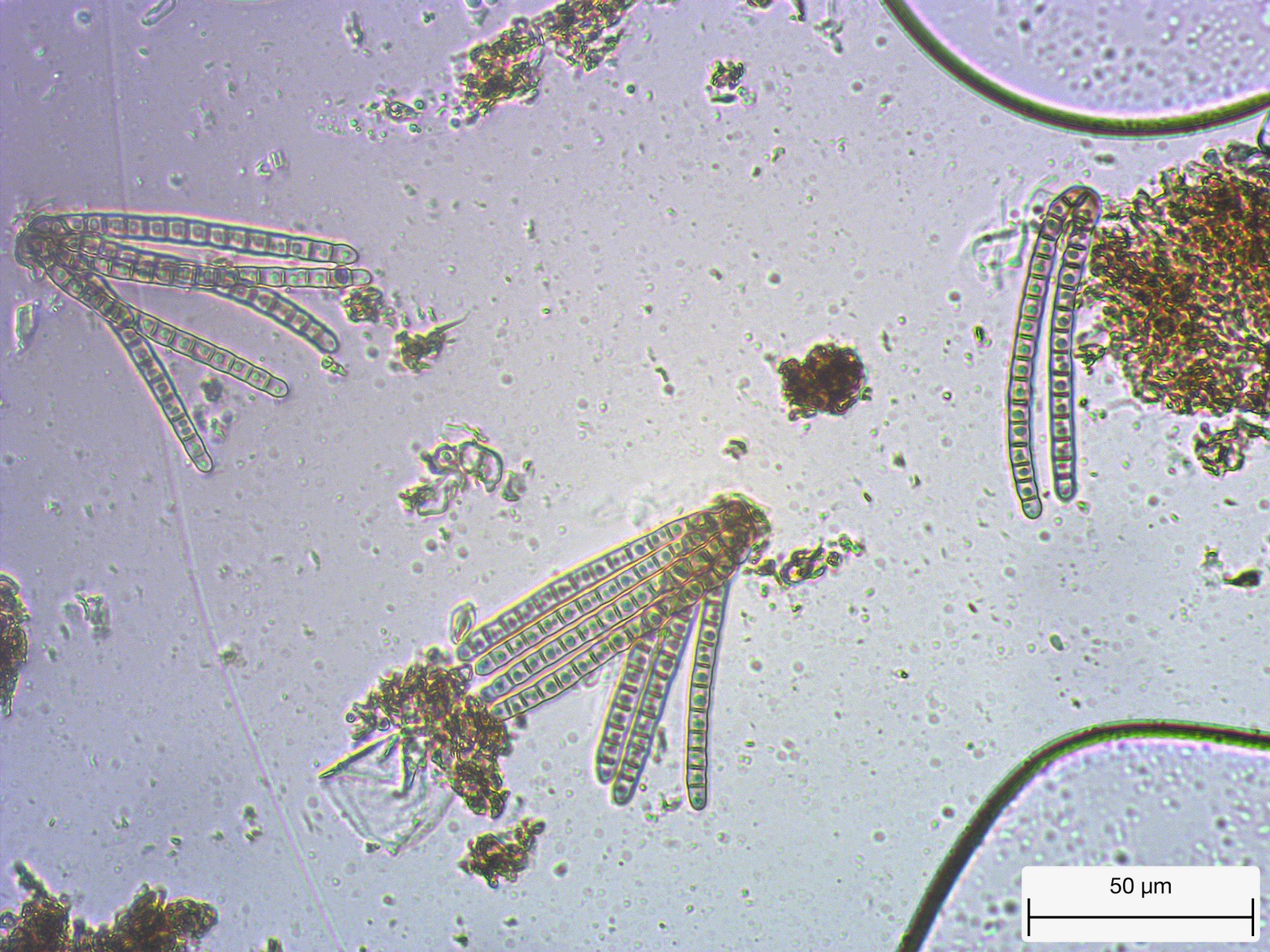 nach zahllosen erfolglosen Versuchen, schwarzen Punkten auf Rinde Glibber zu entlocken ist mir das in einem Fall gelungen. Jetzt hab ich also sogar Mikroaufnahmen von Sporen - so hoffe ich jedenfalls, bin aber genauso schlau wie zuvor.