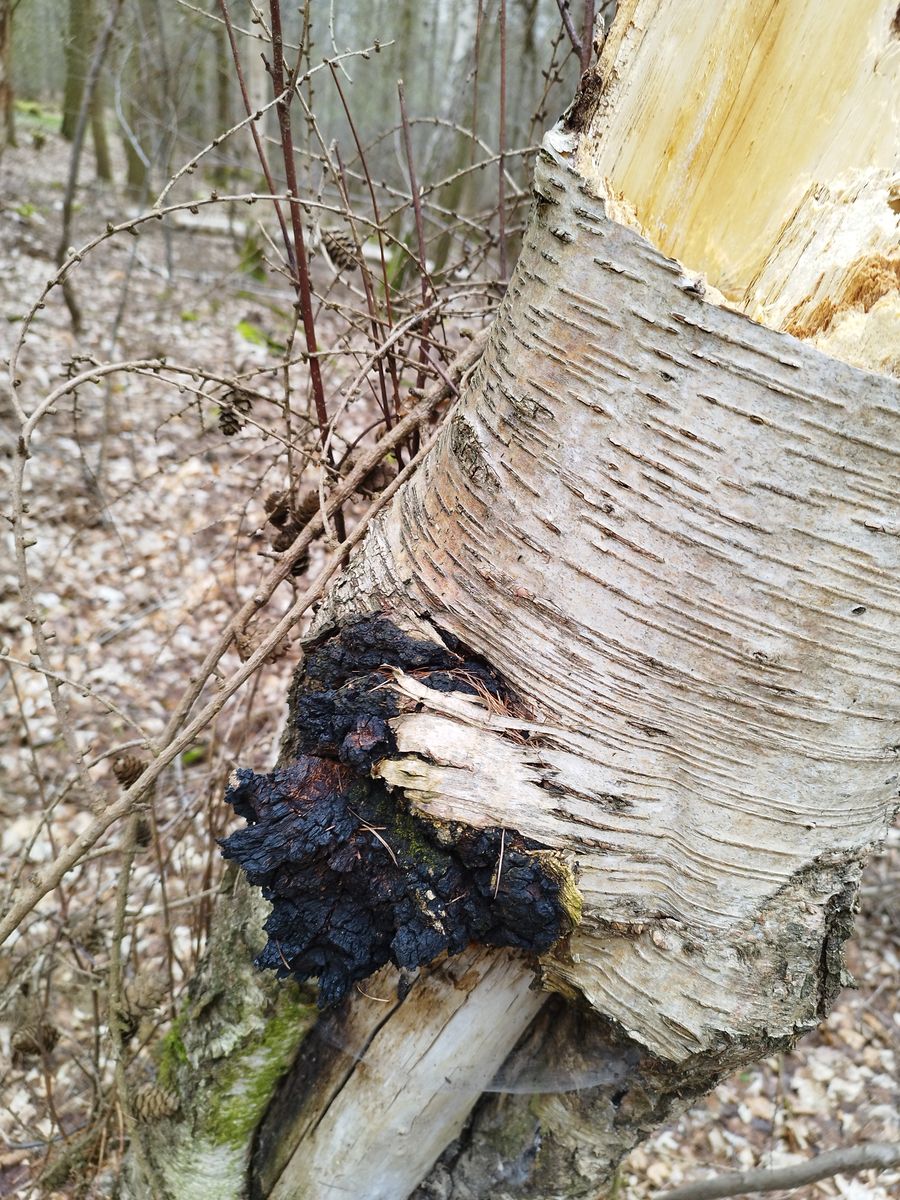Dabei entdeckten wir diesen vermeintlichen Chaga. Für mich mein Erstfund
