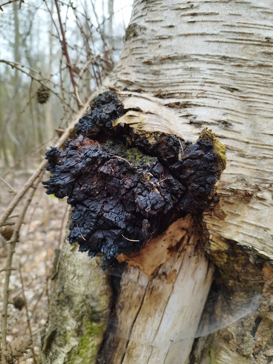Dabei entdeckten wir diesen vermeintlichen Chaga. Für mich mein Erstfund