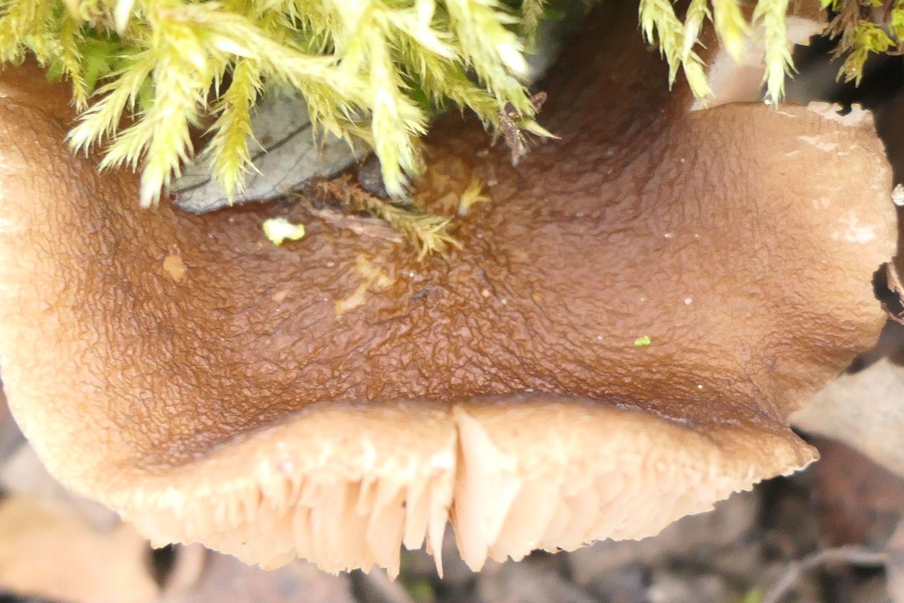 Hüte ein blasses braun, stark hygrophan, der große Fruchtkörper knappe 3cm.