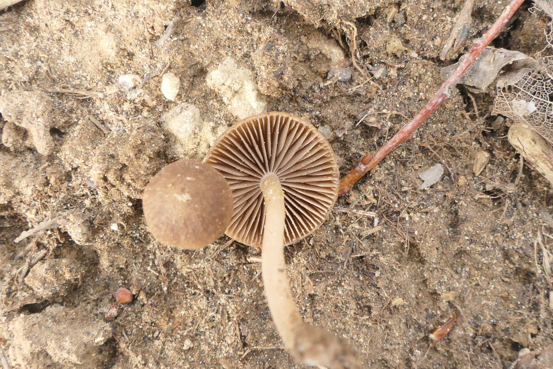Psathyrella ammophilia passt aber nicht, da die Sporen bei dieser Art größer (deswegen scheidet auch halophila und flexispora aus)
