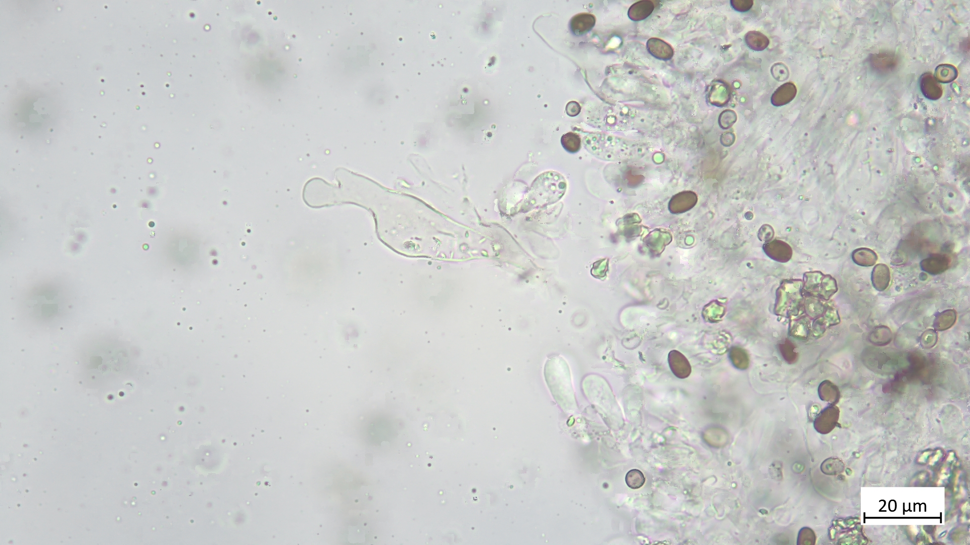 Mit dem Schlüssel von Melzer lande ich am ehesten noch bei Salina (allerdings zeigt mein Fund keine Auflagerungen auf den Zystiden, was dann wieder sehr verunsichert, Ökologie könnte passen)