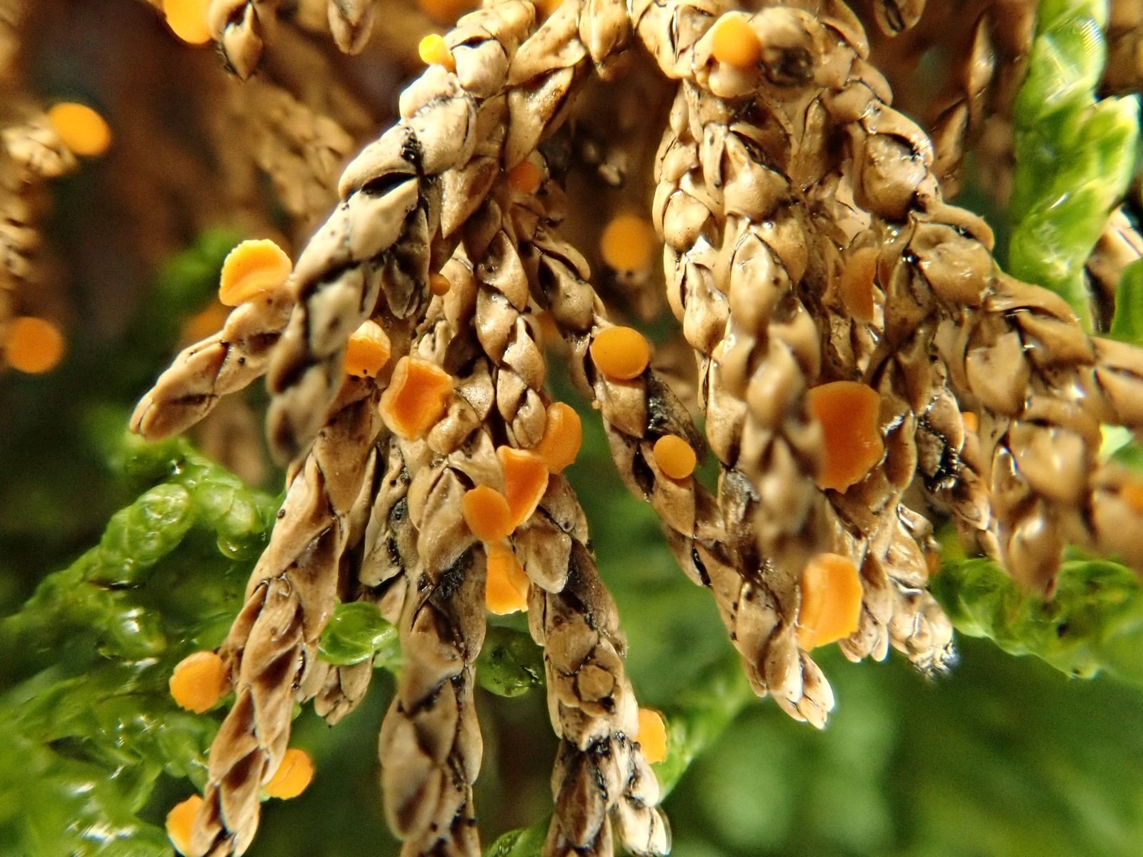 Zum Schluß waren wir noch auf einem Friedhof in Könnern um nach Pithya cupressina - dem Sadebaumbecherchen - zu suchen.