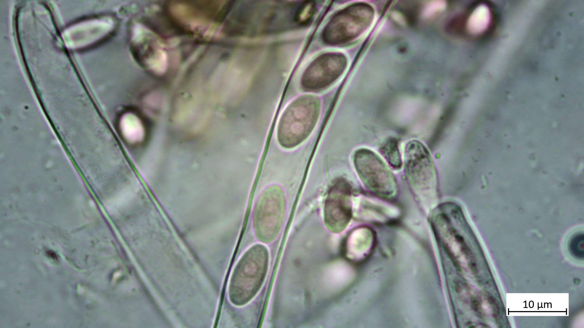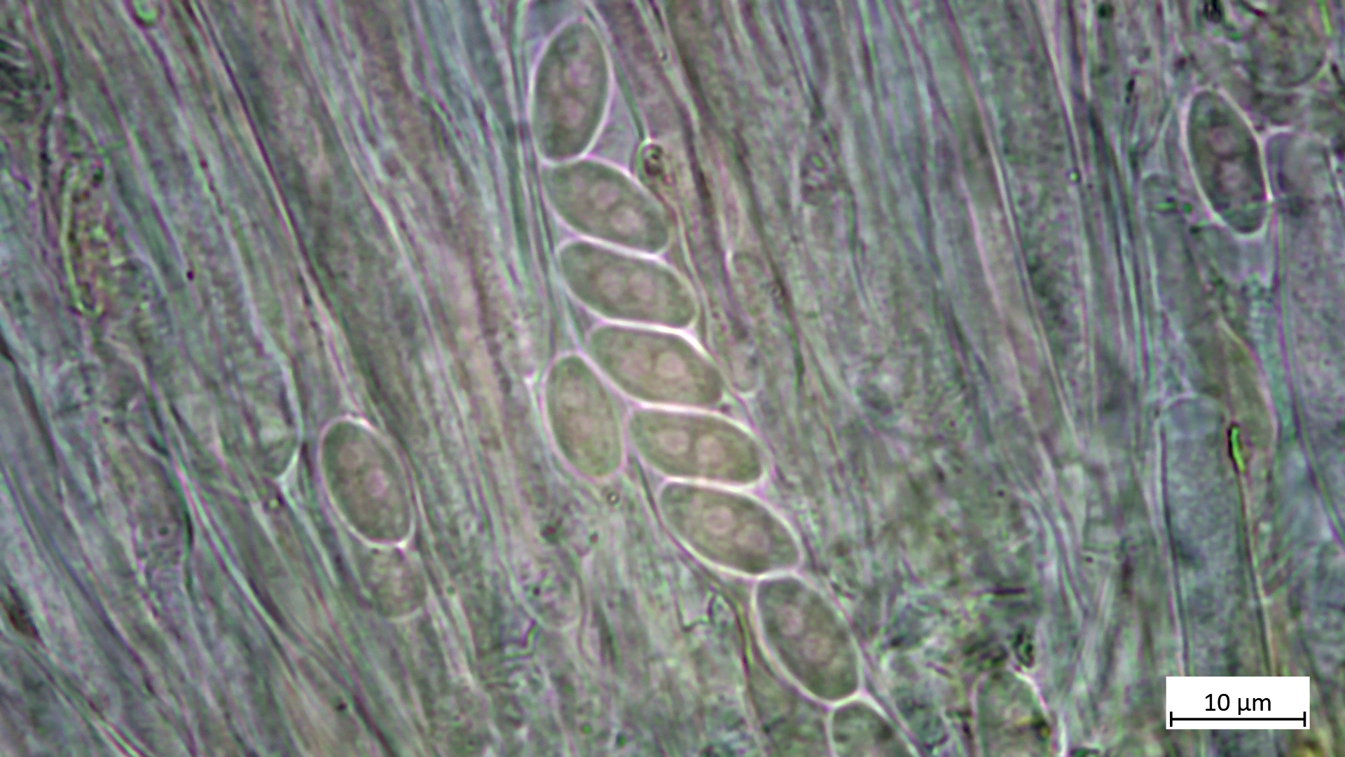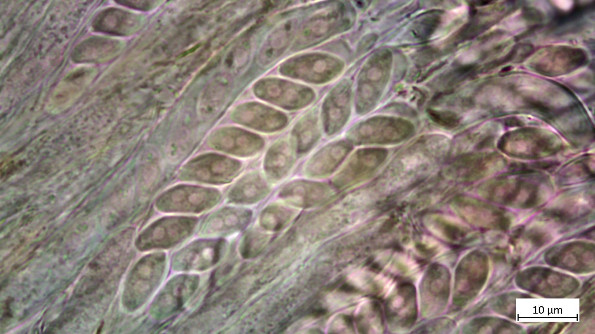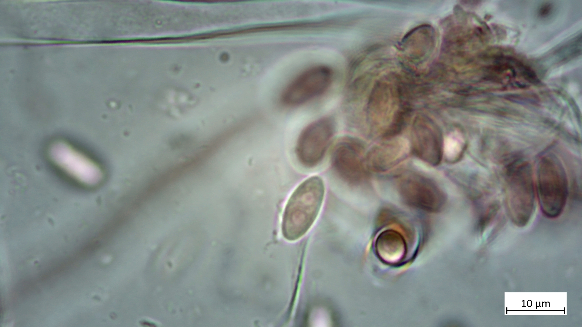 Sporen? Nicht viele zu finden, hell? Mit Warzen bzw. punktiert? Schlecht darzustellen!