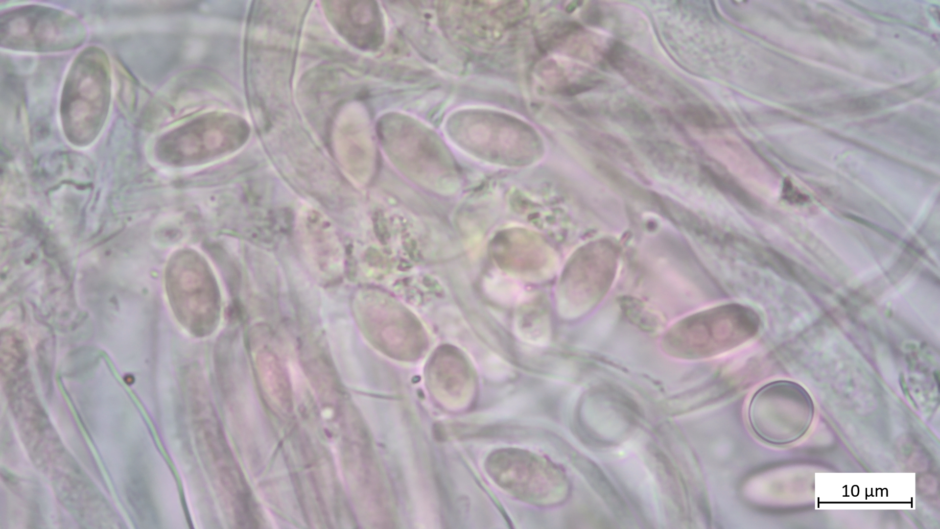Vergleich mal damit. Sporen sind sicher noch nicht gut zu erkennen, da die Fruchtkörper unreif sind.