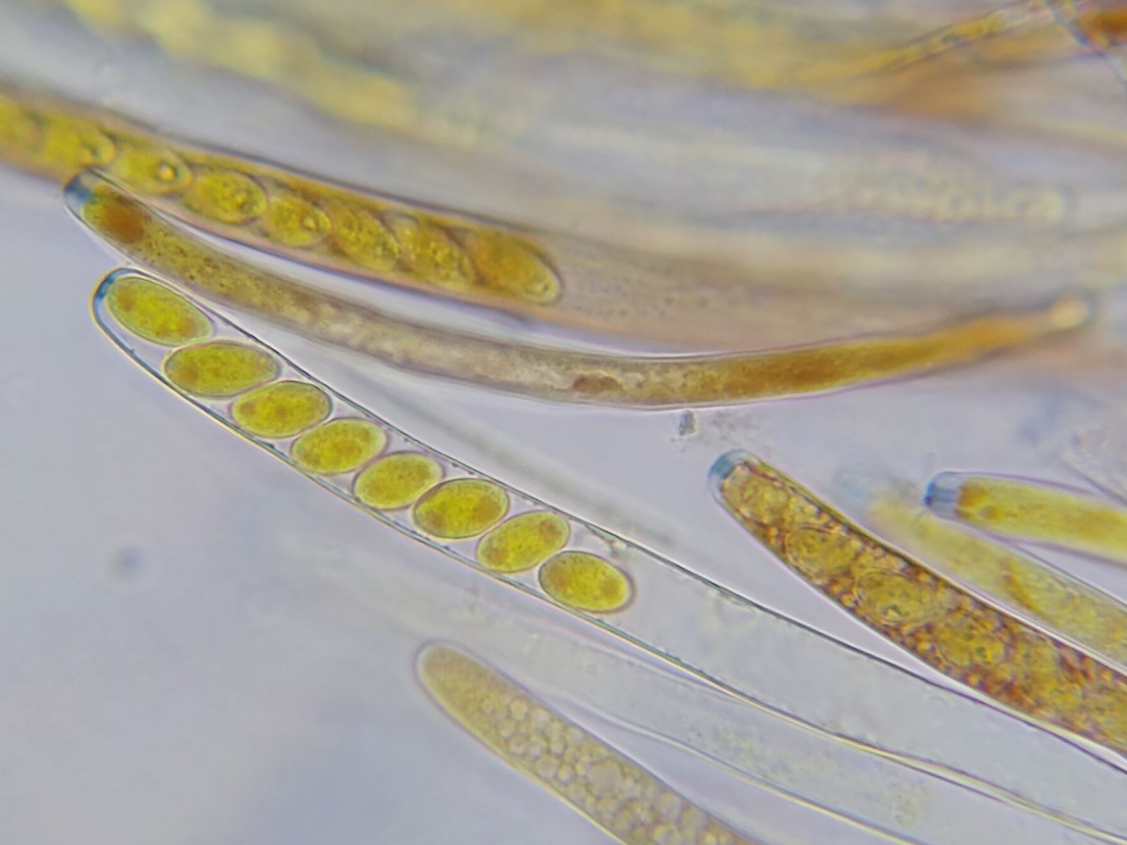 Bild 11 Achtsporige, einreihige Asci / Paraphysen einfach mit ca. 2,5µm Durchmesser
