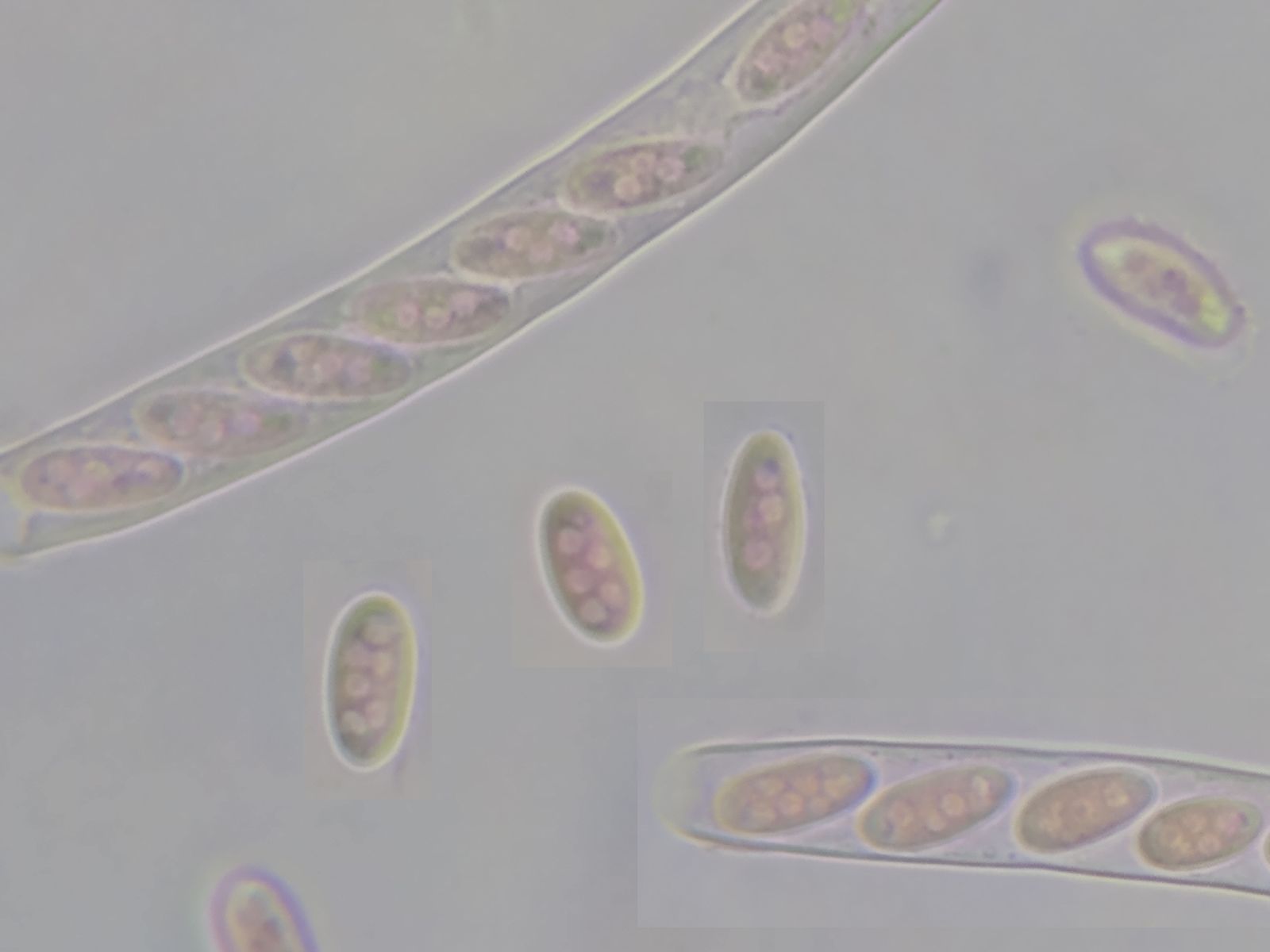 Bei der Recherche stoße ich auf eine Seite des italienischen Pilz-Forums zu Dumontinia tuberosa, in der bis zu 6 Kerne als möglich genannt werden.