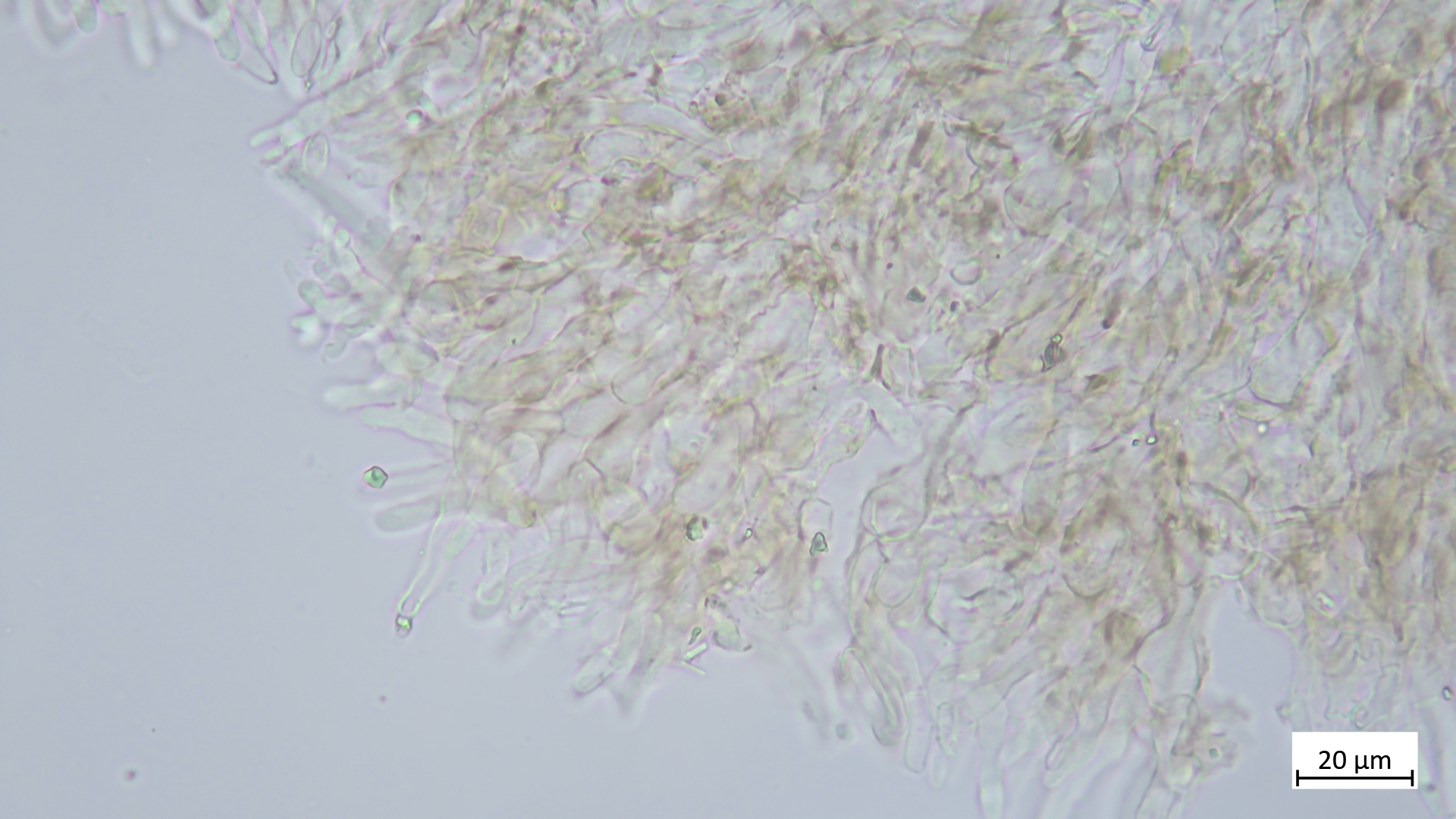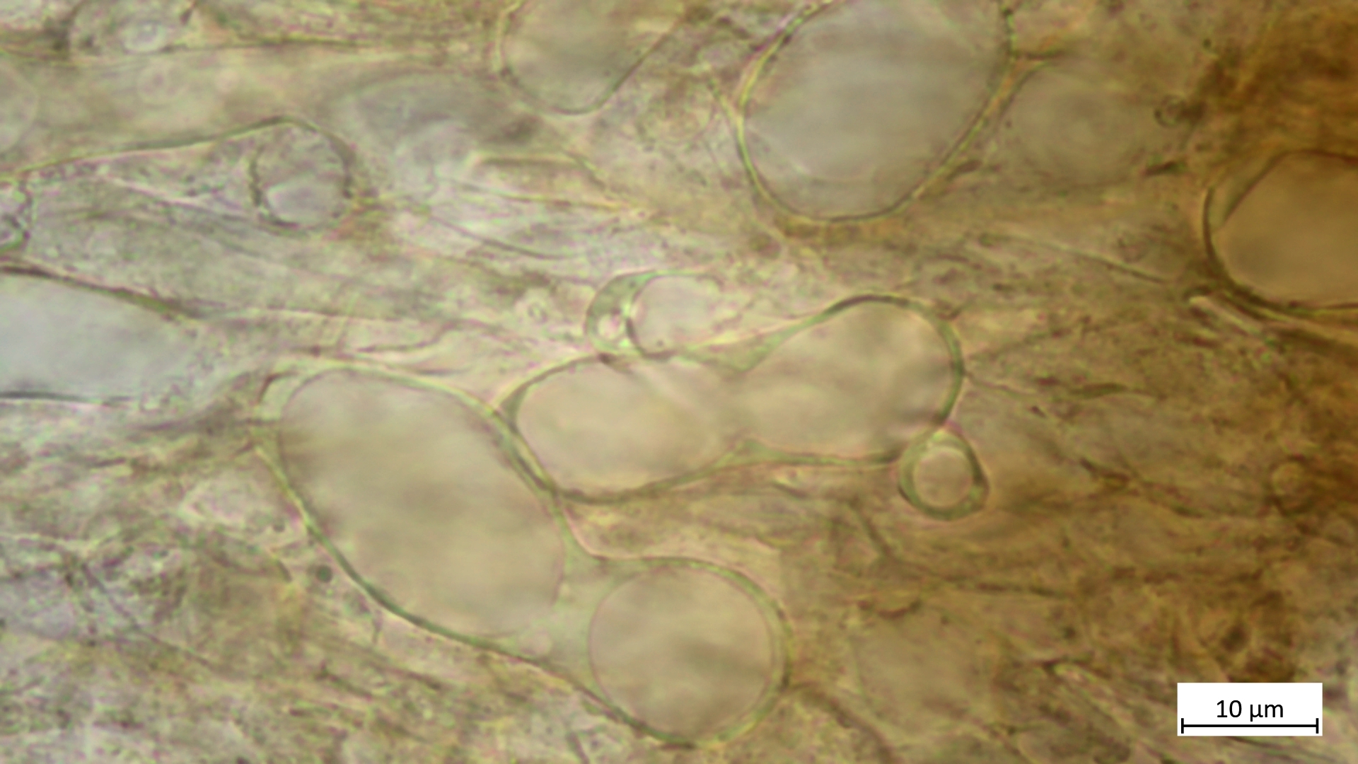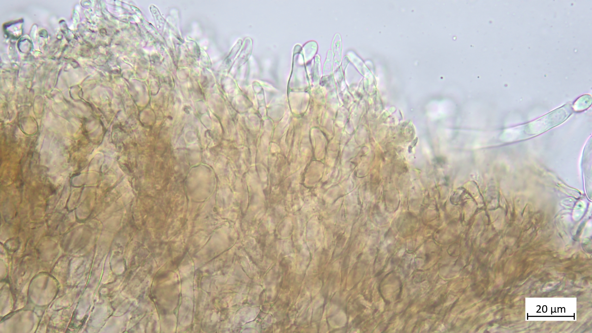 Ich muss noch ergänzen, dass alle meine gezeigten Schnitte die Flanken des Fruchtkörpers zeigen, also die Unterseite nahe beim Rand. ich habe auch Margoschnitte gemacht, habe aber gemerkt, dass die Flanke doch nicht so weniger geeignet scheint als der Rand, weil ich auch dort die textur ziemlich variabel gefunden habe. Und das mit den Sklerotien muss ich doch wieder relativieren: Reichlich Glykogen fand sich nun auch bei S. tuberosa, und das Schwammige des Gewebes kommt auch dort vor, wie außerdem die Dickwandigkeit der Hyphen auch bei S. binucleata zu finden ist. Also eher nur wenig Unterschied.