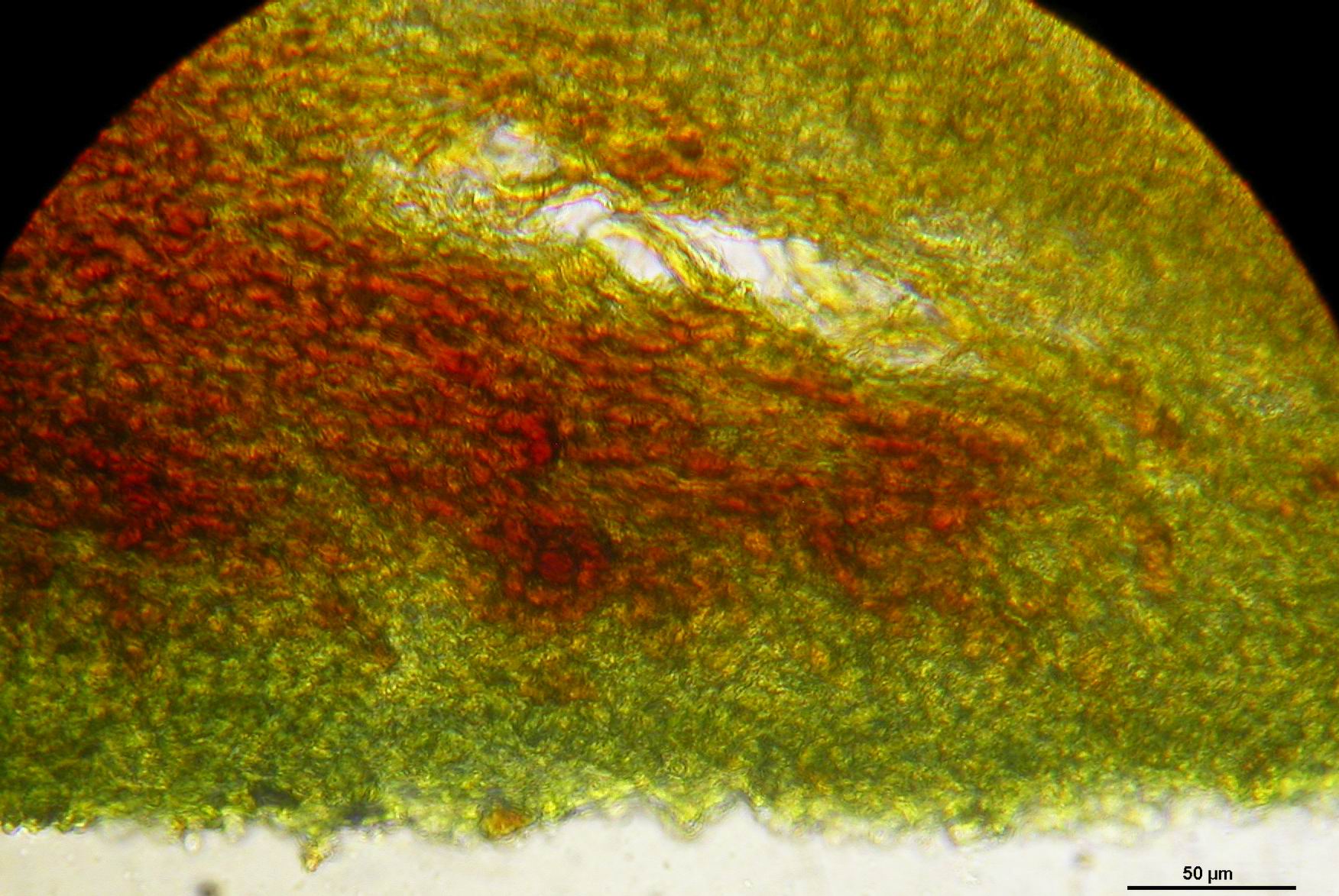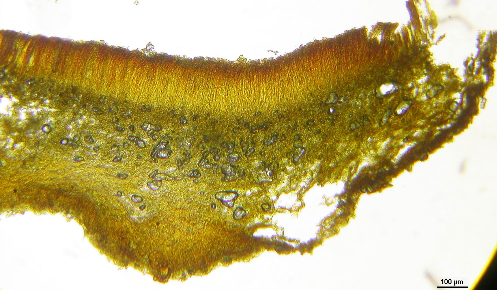 Gut sieht man hier die ziemlich senkrechte Orientierung des Ectalexcipulums und seine scharfe Abgrenzung gegen die Medulla. So schön eindeutig waren die Resultate bei anderen Funden leider nicht.