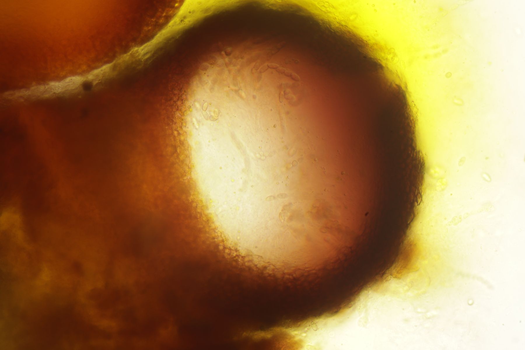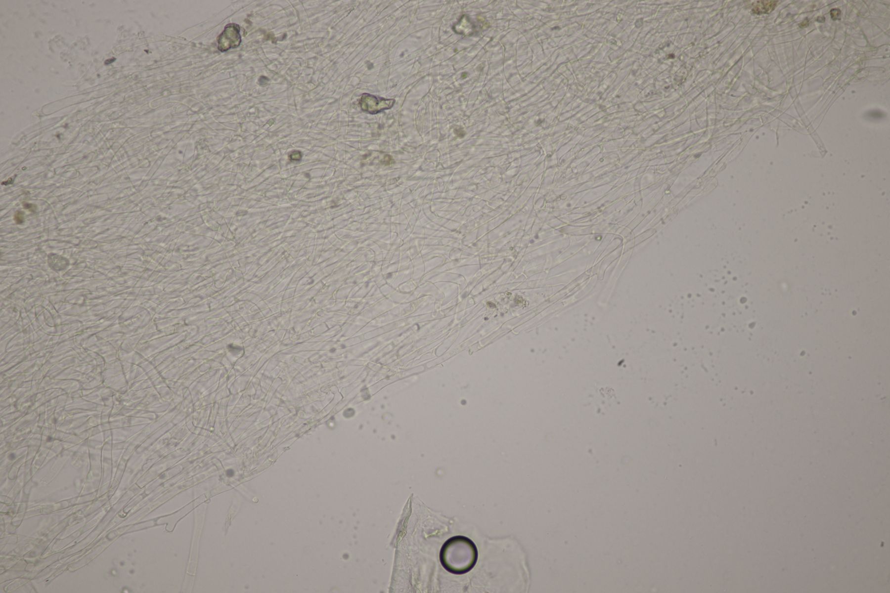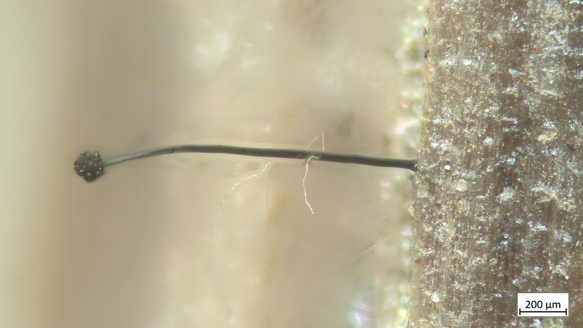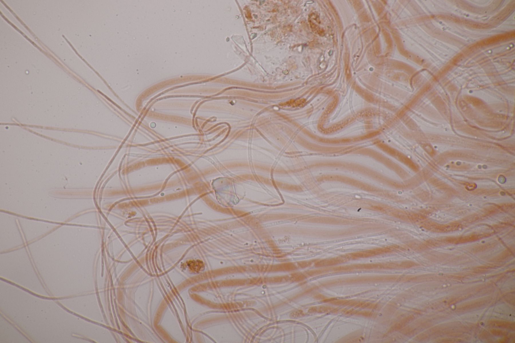 Die Herstellung eines Präparates war eine ziemlich schwierige Angelegenheit, die Spitze der Pinzette war etwa dreimal so groß wie der Pilz.