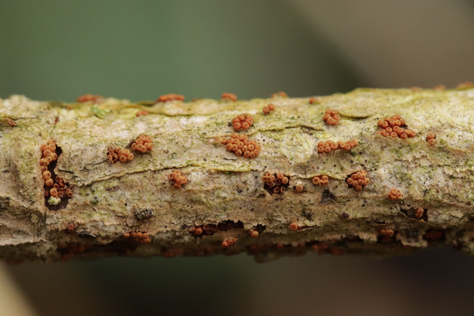 Ich vermute Pericona byssoides der ebenfalls auf dem Wirt vorkommt. Das sieht schon frappierend gleich aus, auch mit den septierten Stengeln usw.