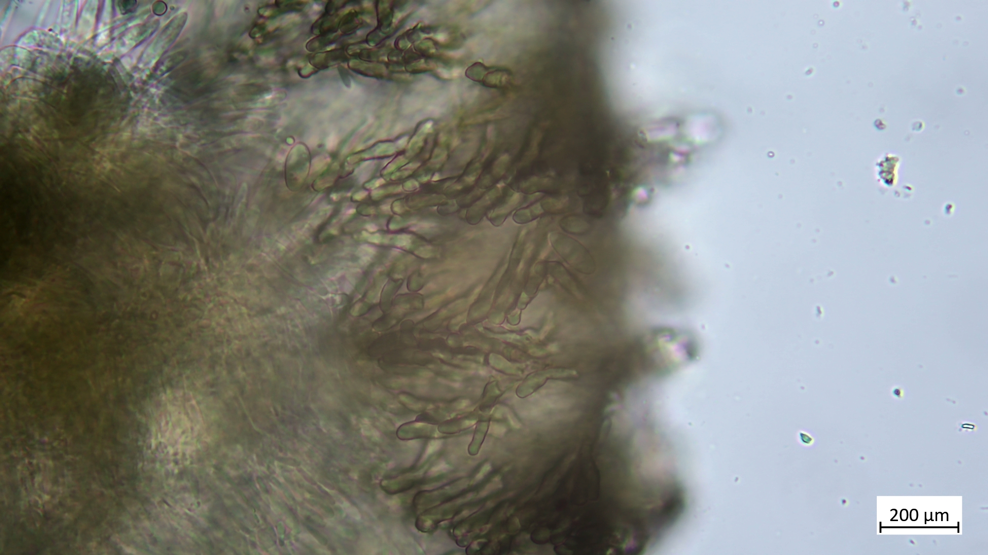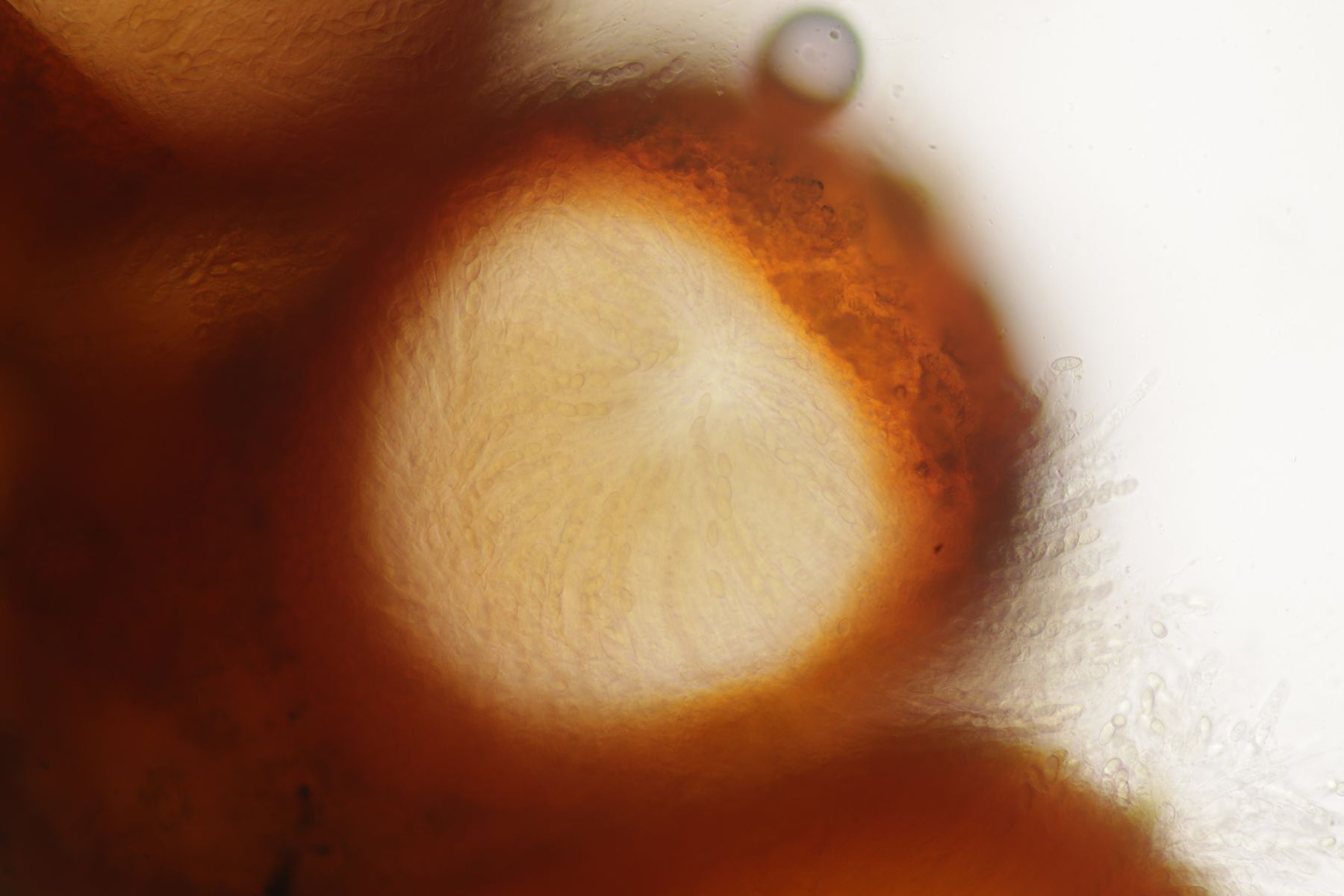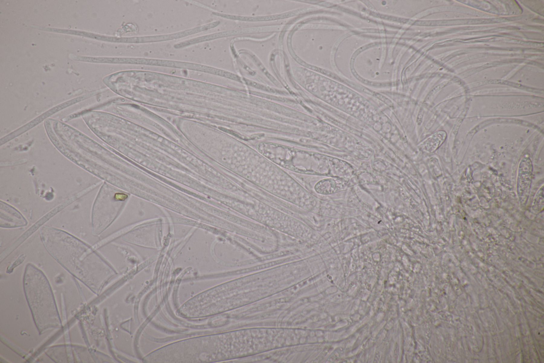 Nr. 1 habe ich jetzt nochmal versucht zu mikroskopieren in Melzer. Aber das macht wirklich keine Freude. Habe die Winzlinge aufgesucht und Sie unter viel Mühe und fummeln auf den Objektträger bekommen. Diese zeigten dann Asci mit amyloiden Apikalapparat. Nachdem ich mir aber die Sporen und die Marginalhaare angeschaut habe, bin ich nicht mehr ganz sicher, ob ich hier nicht die nächste Art abgekratzt habe. Makroskopisch (wenn man das so nennen will, also unter Auflicht) jedenfalls identisch mit der Nr. 1.