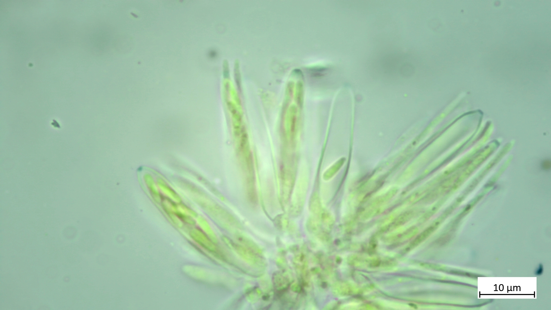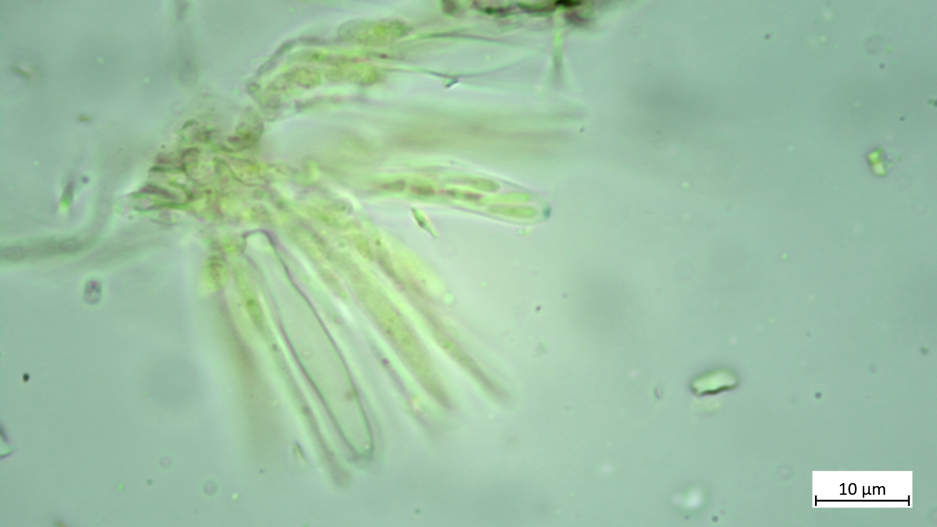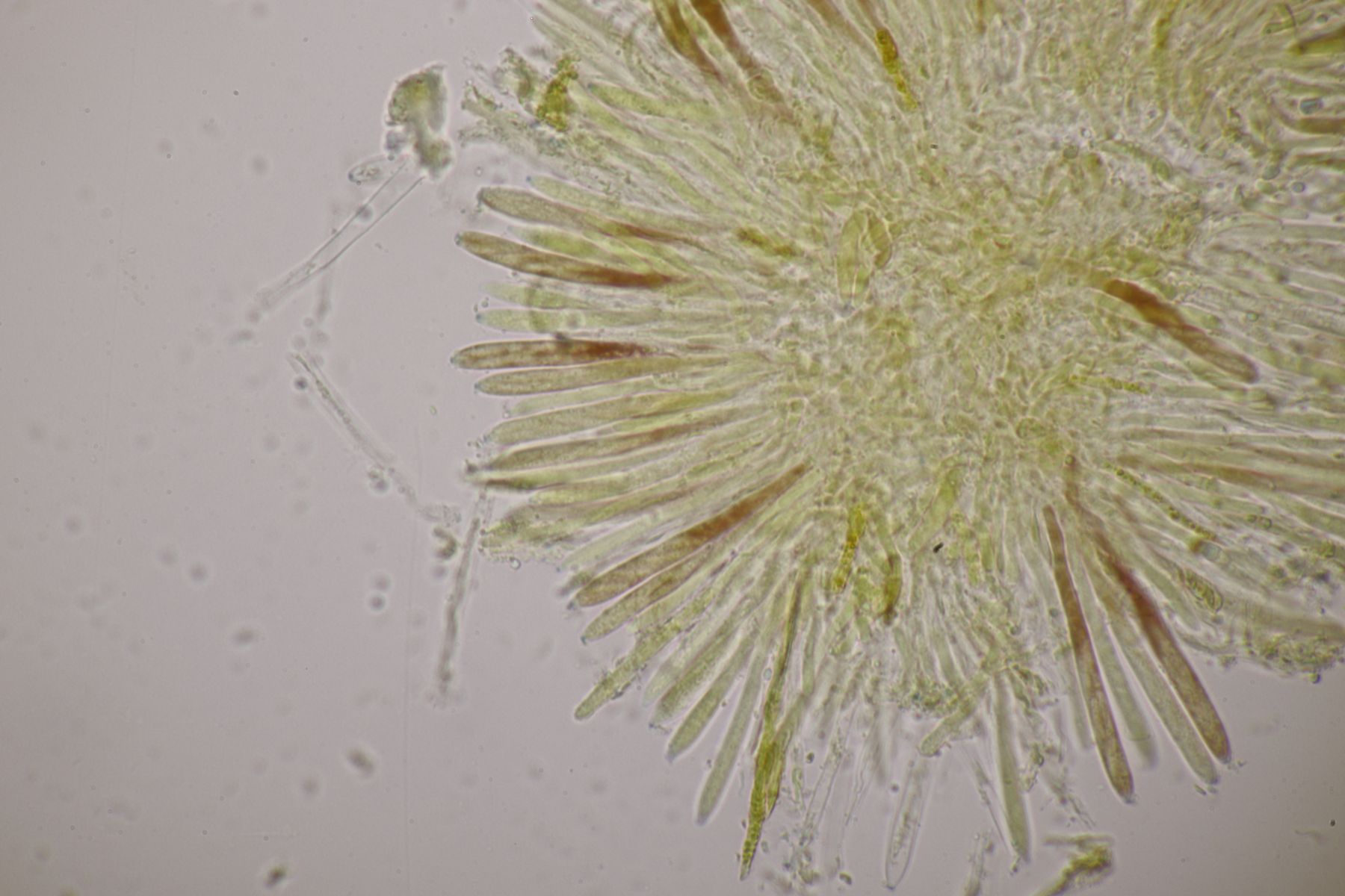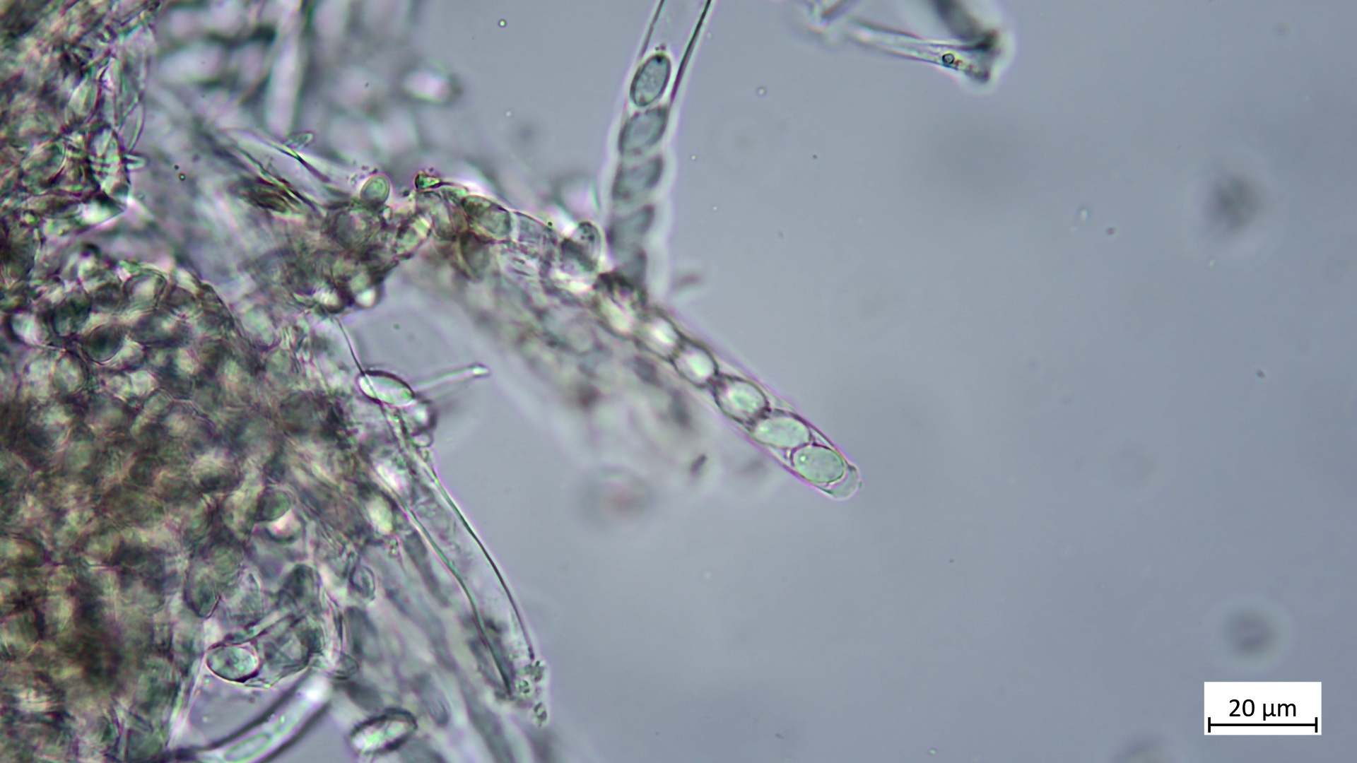 Ich kannte diese auffällige Sporenform und deine Makrobilder hatten Ähnlichkeit mit Heterosphaeria cf.