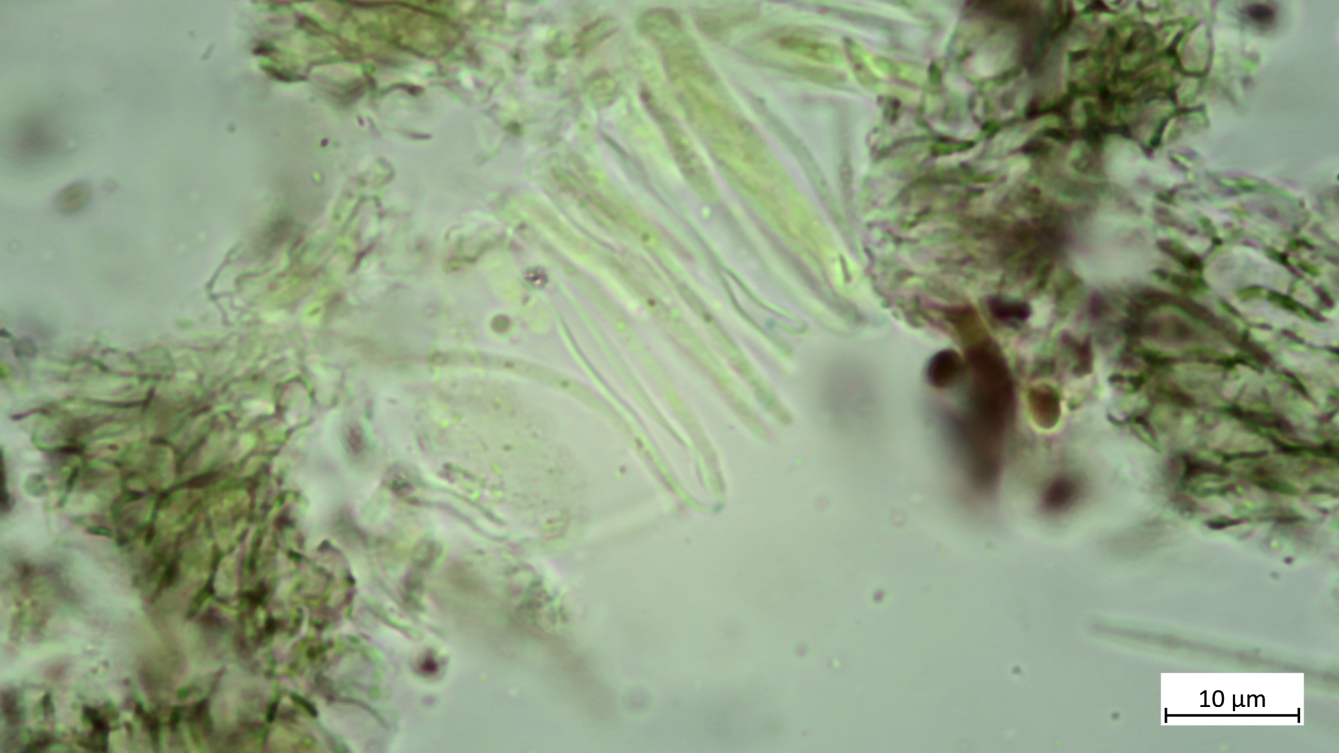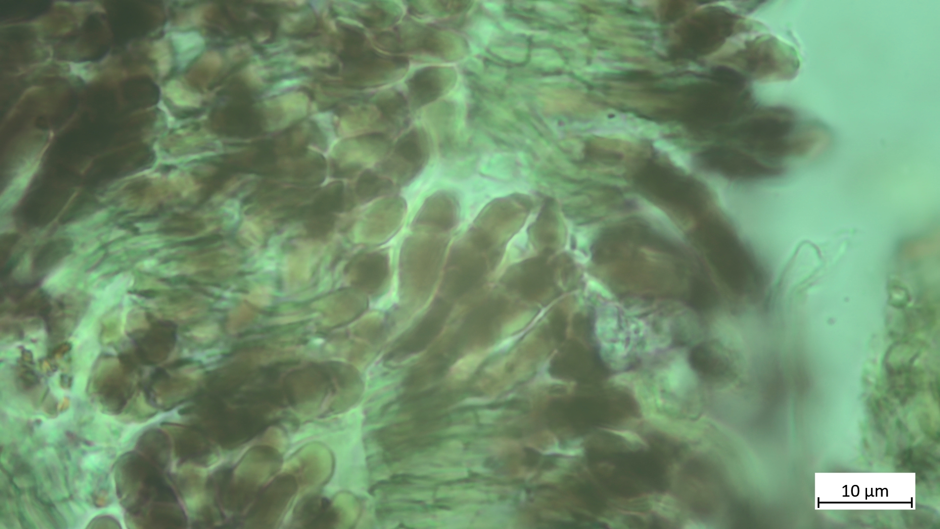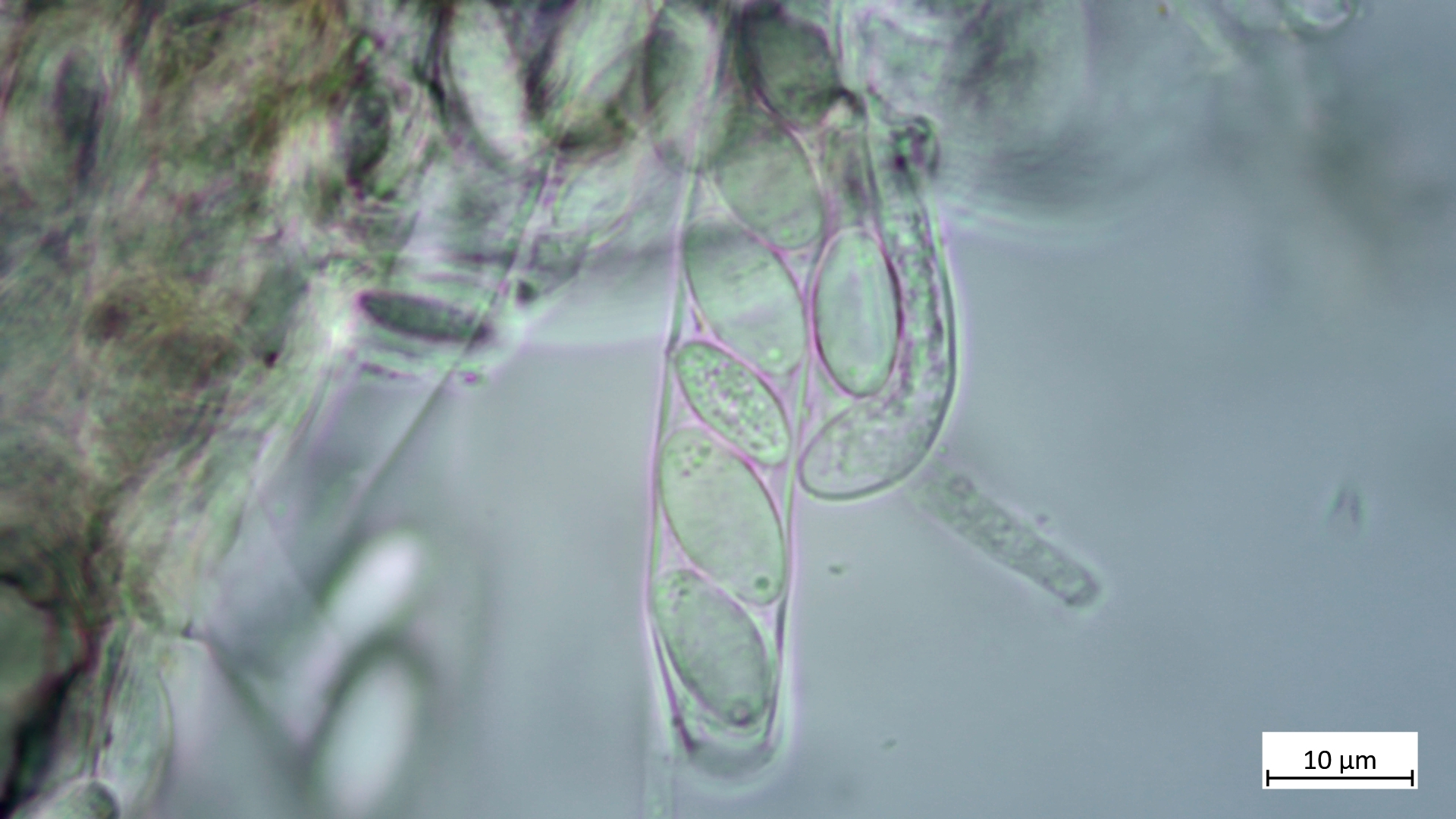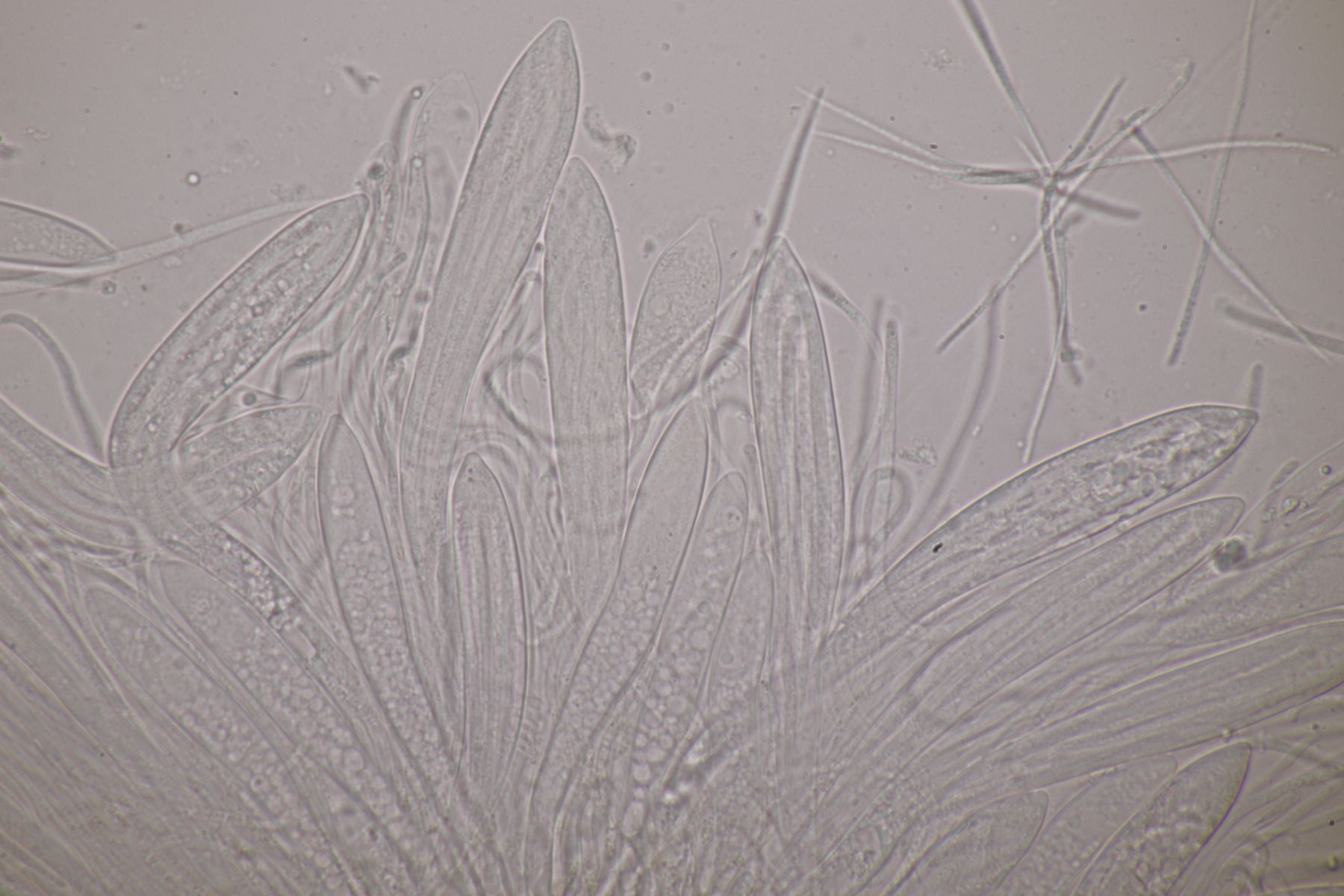 Ich kannte diese auffällige Sporenform und deine Makrobilder hatten Ähnlichkeit mit Heterosphaeria cf.