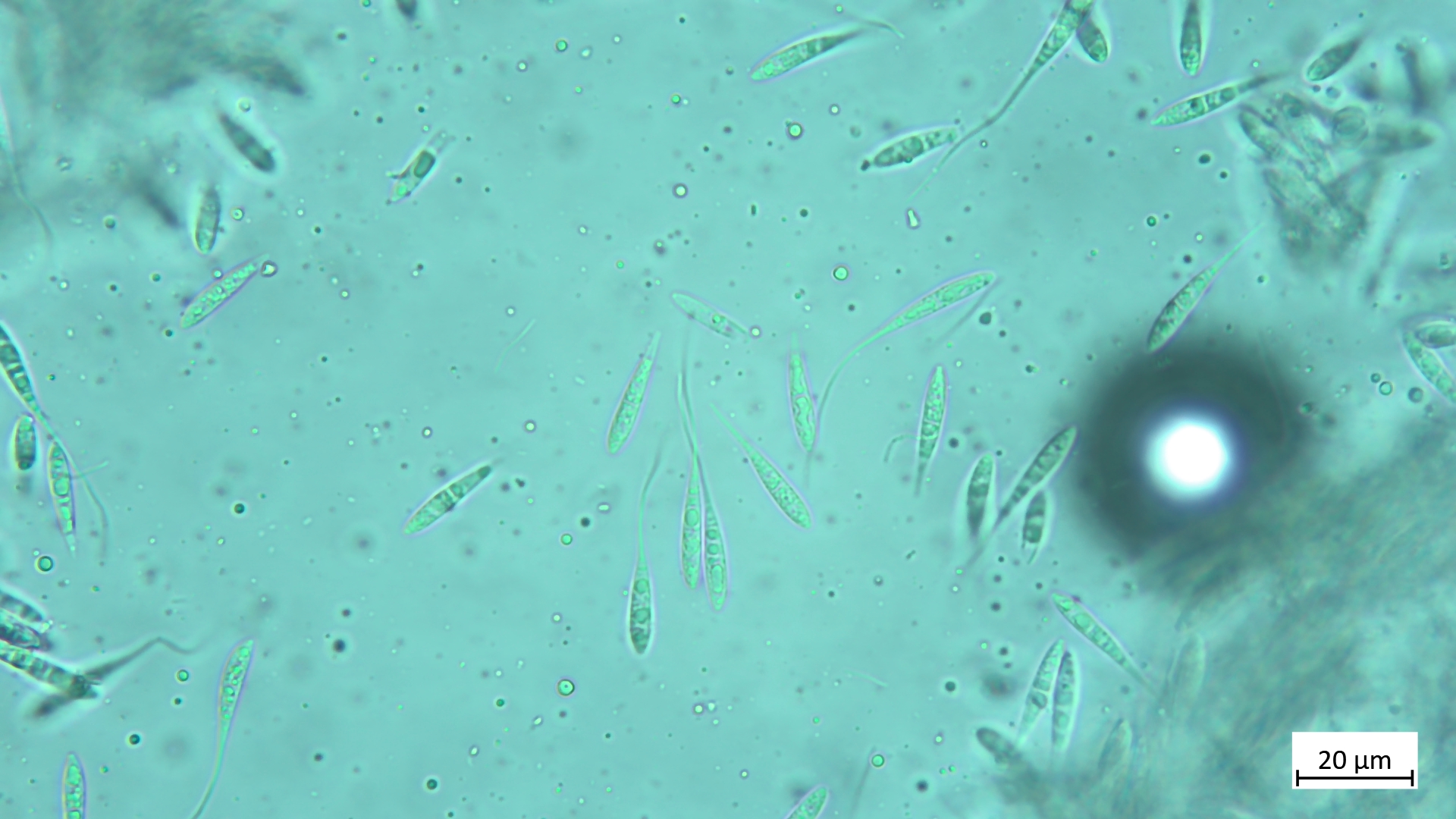 • Hallo Felli, vielen Dank für deine Detektivarbeit. Das könnten in der Tat Konidiensporen von Ceriospora polygonacearum sein. Auch makroskopisch passt das.