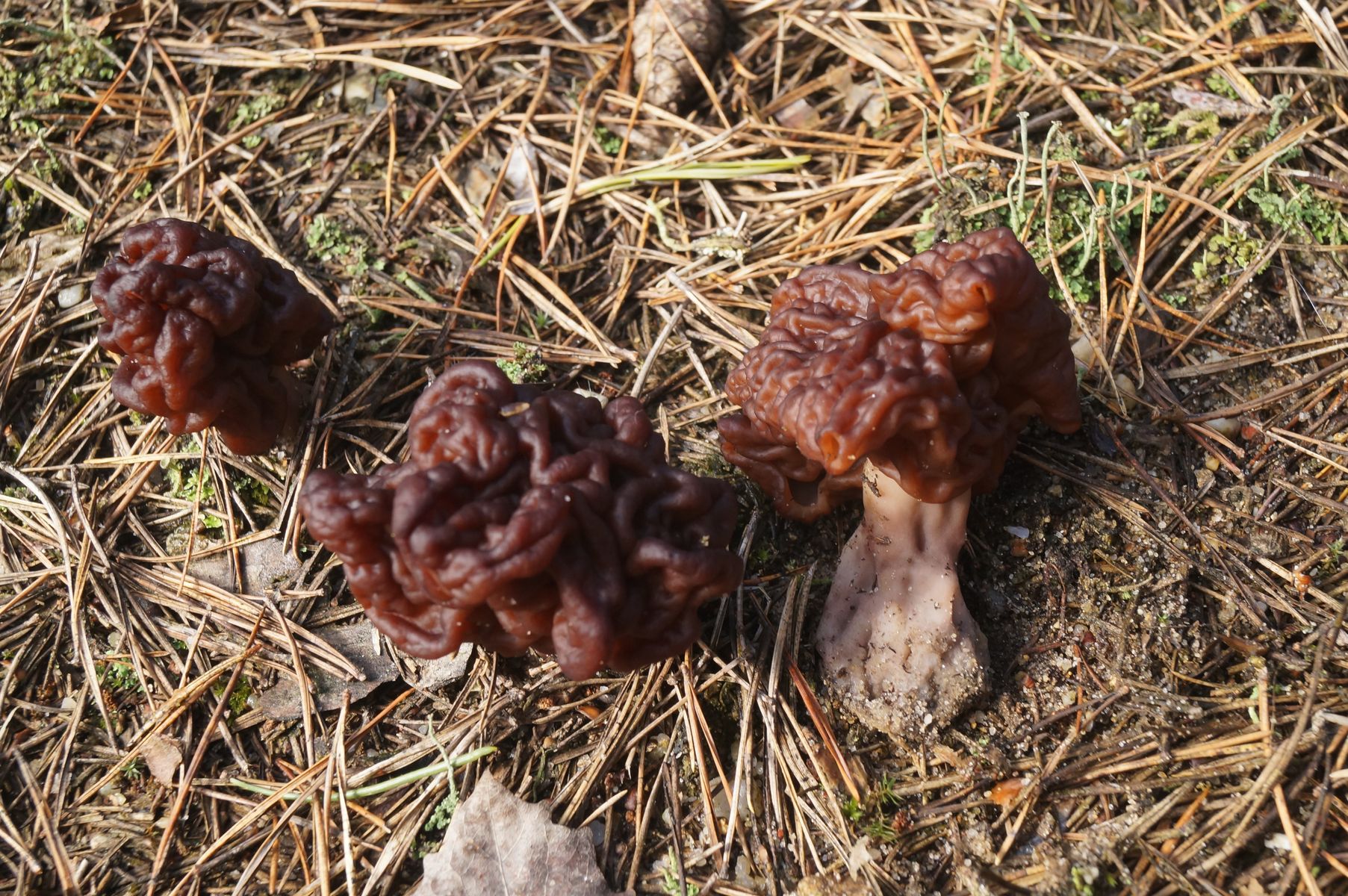 Dann gab es Lorchelalarm. Es zeigten sich ein paar schöne Exemplare der Zipfellorchel (Gyromitra fastigiata).