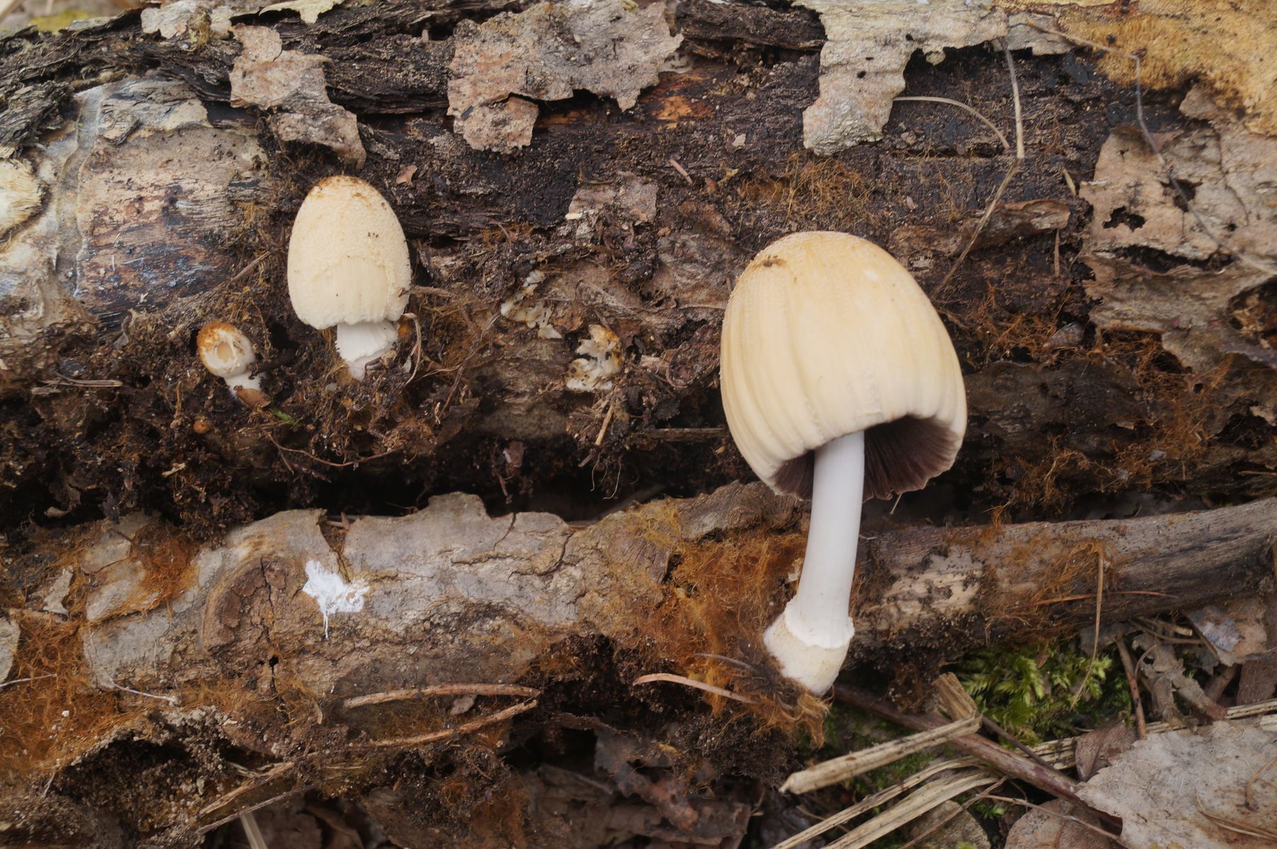 Auf einem morschen Baumstamm hatten sich einige Haustintlinge (Coprinellus domesticus)Bescheidete Tintlinge (Coprinellus ellisii) angesiedelt. Das hat Stefan herausgefunden.