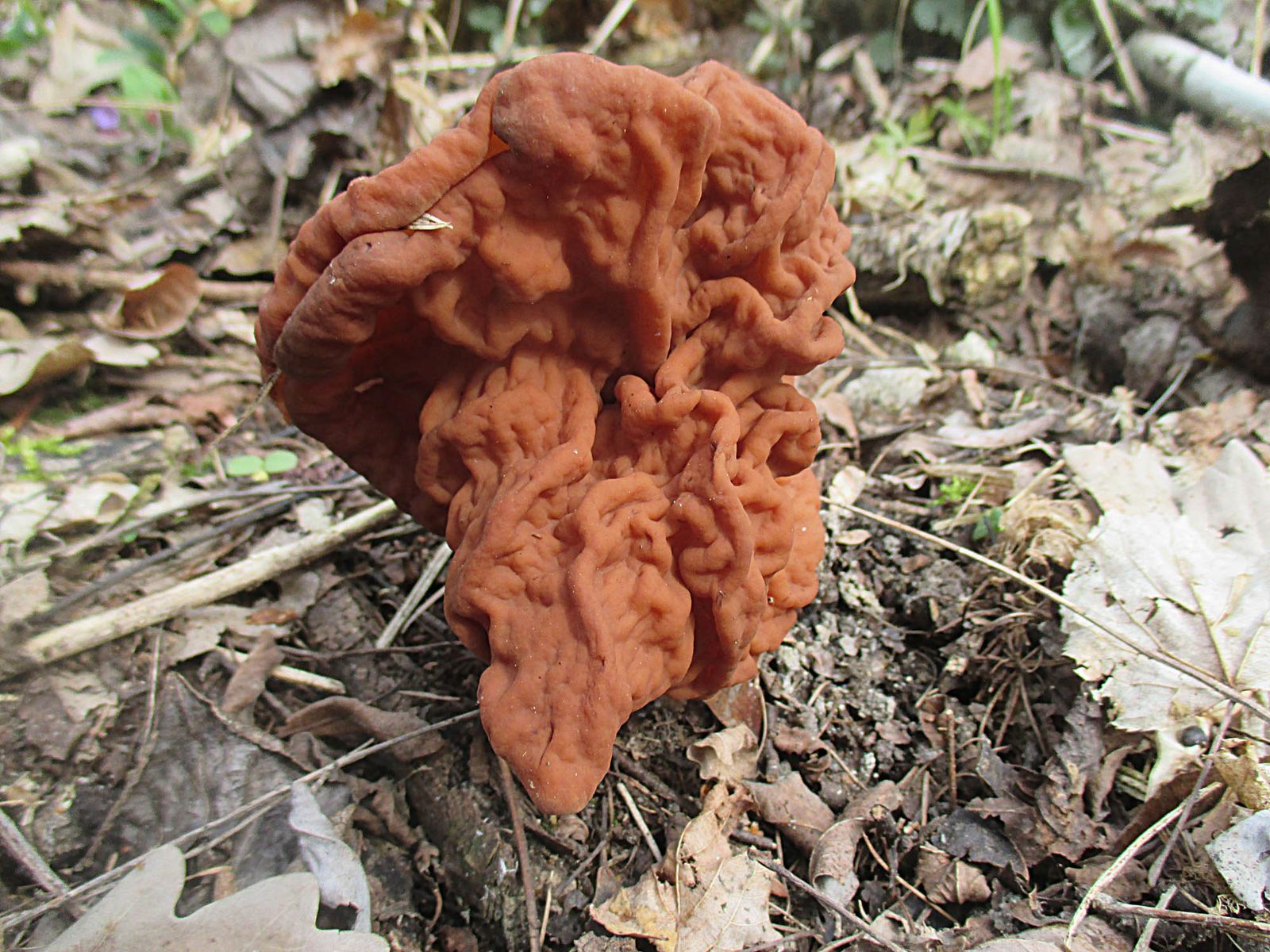 Dann gab es Lorchelalarm. Es zeigten sich ein paar schöne Exemplare der Zipfellorchel (Gyromitra fastigiata).
